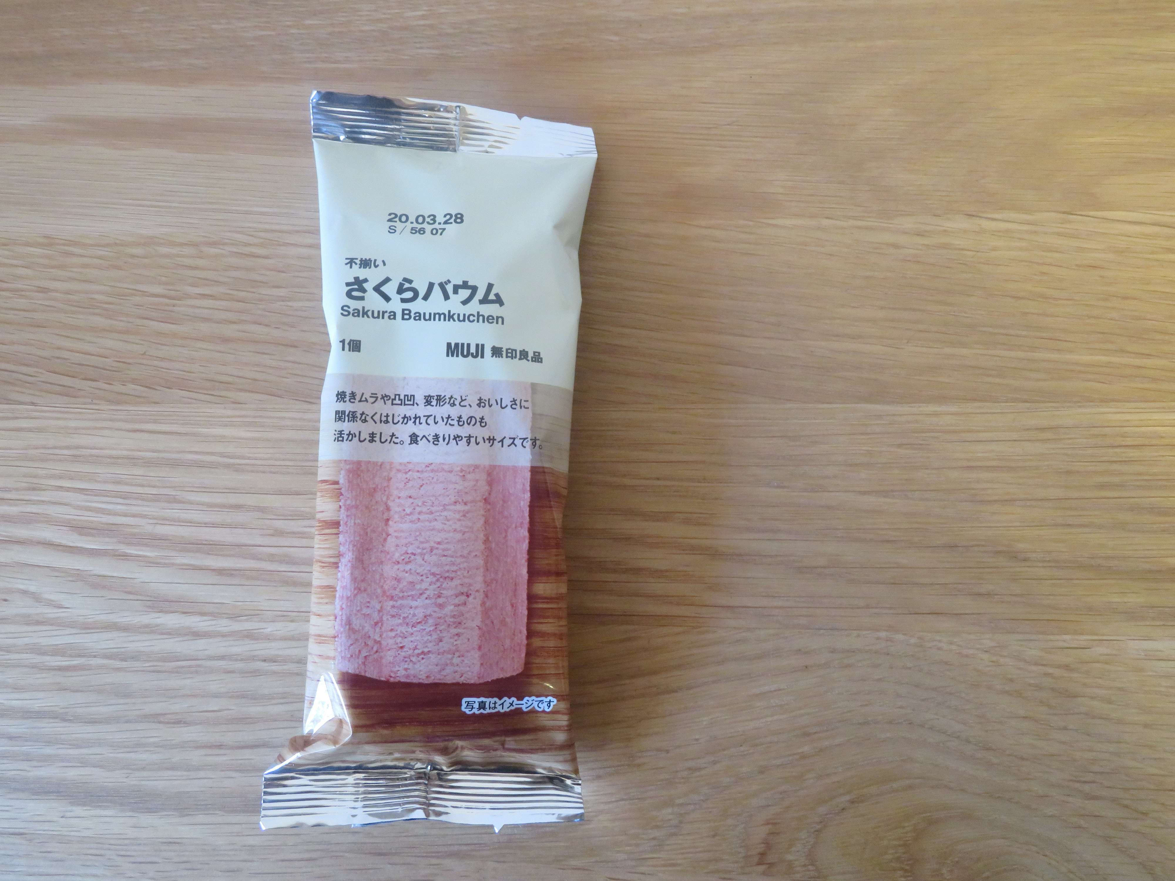 不揃いバウムのシリーズは無印のお菓子の中でも定番。人気商品のさくら味ということで、期待が高まります。