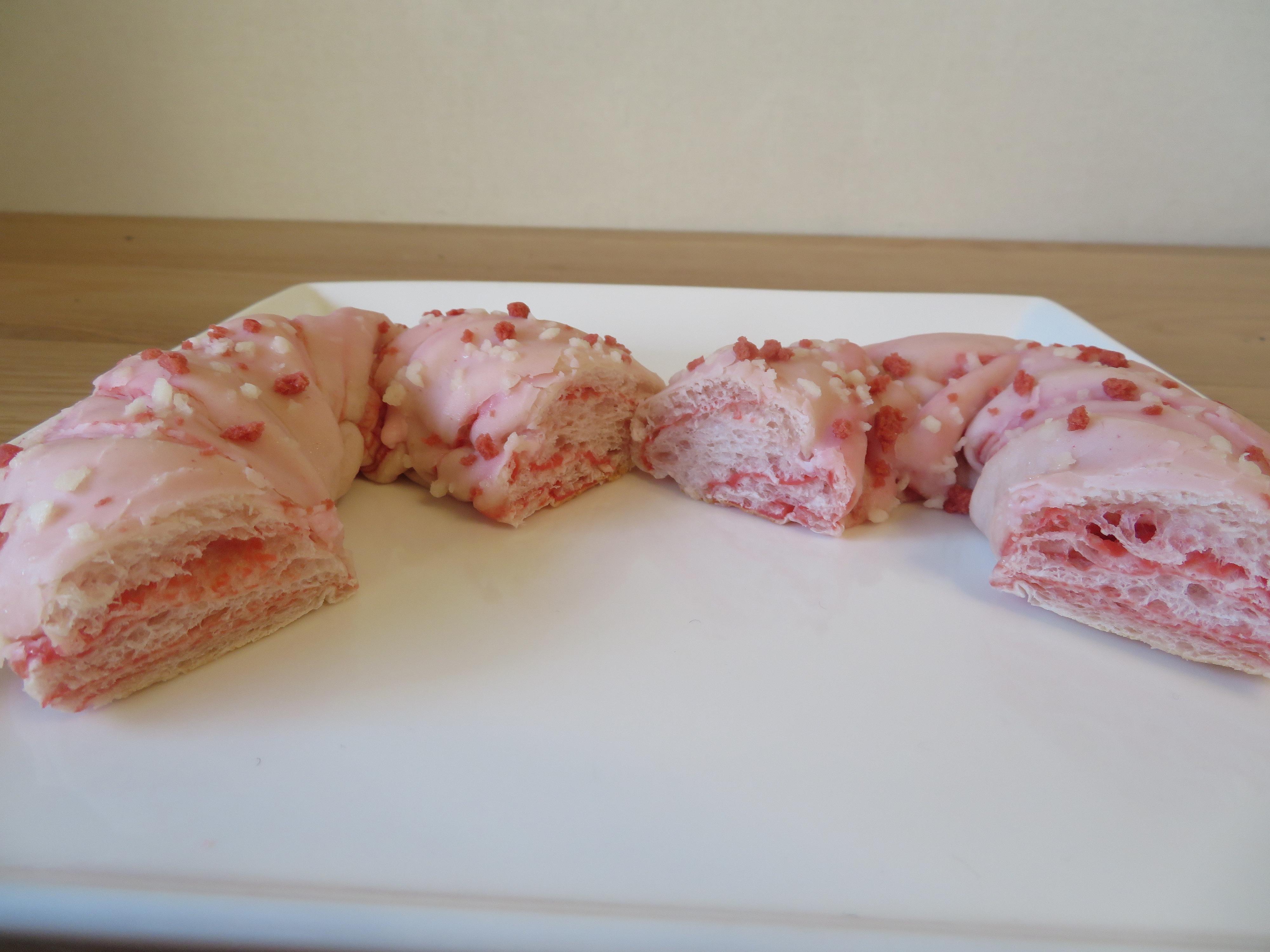 あまおう苺のクリームを生地に折りこんでいるそうですが、クリームと言うには違和感。
