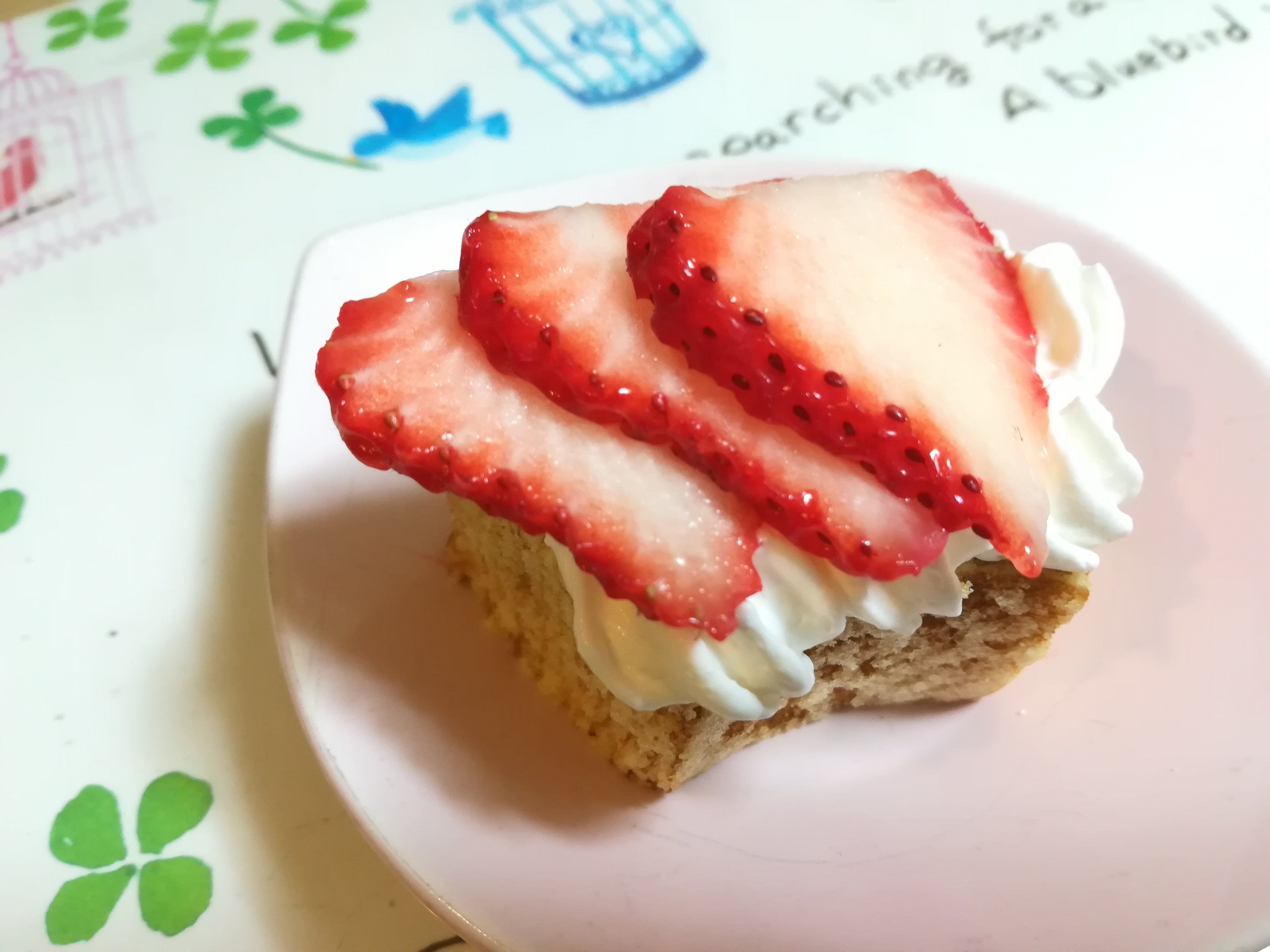 ‥といっても、家にあったバウムクーヘンに、ホイップクリームとイチゴをのっけただけというカンタンさ(笑)