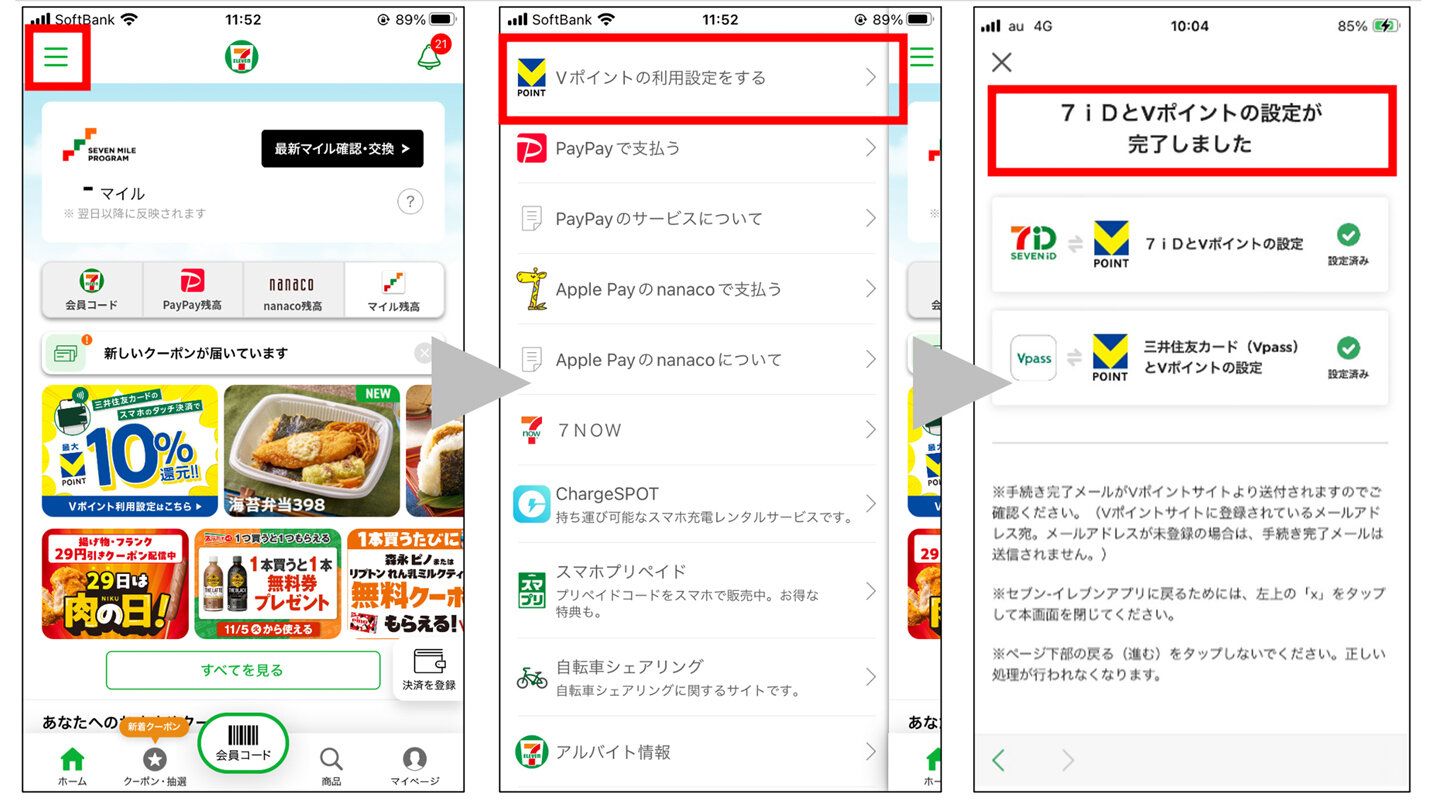 セブン-イレブンアプリをダウンロードしてVポイントの利用設定をするだけ!