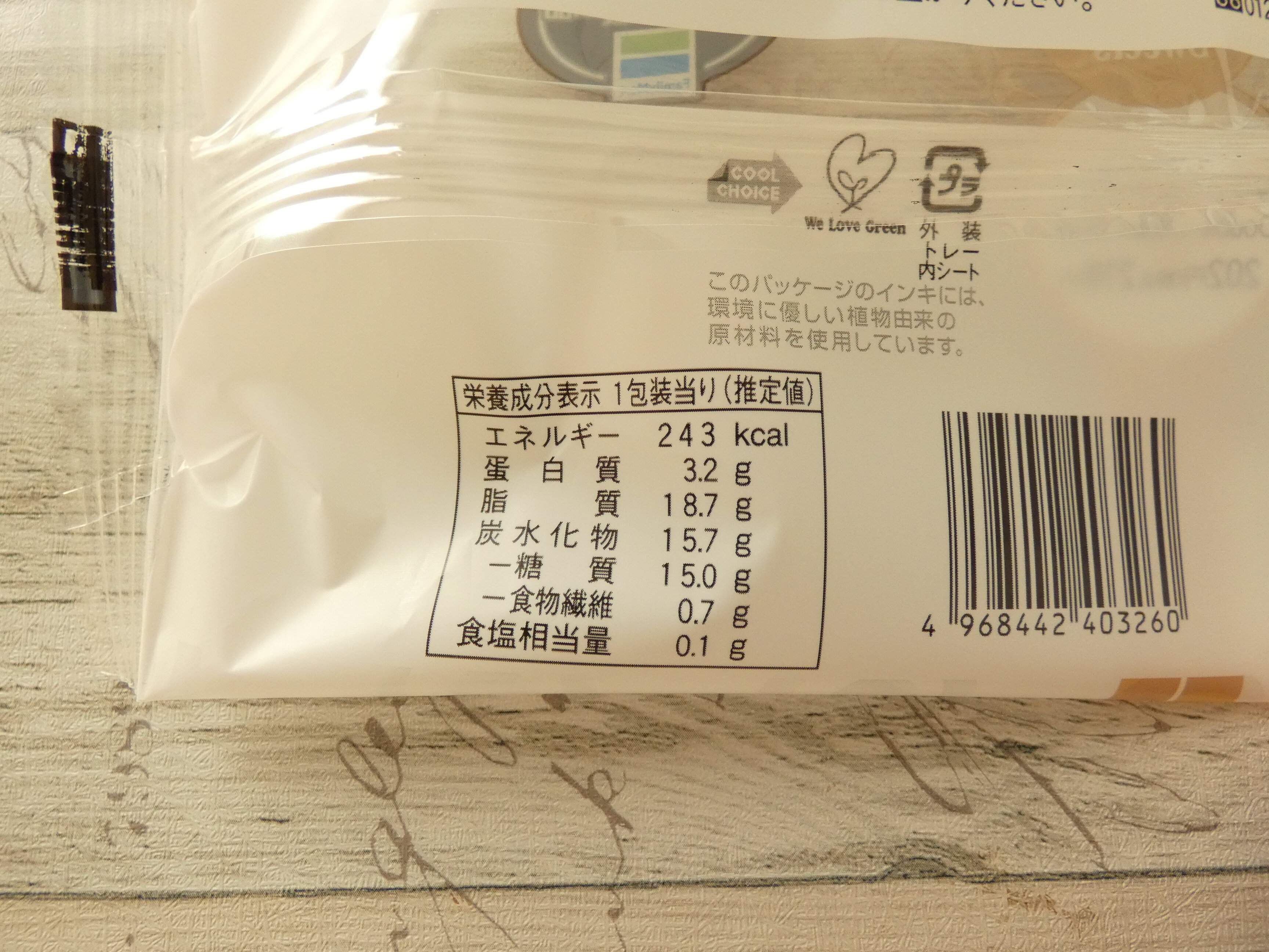 栄養成分表示を見ると1個のエネルギーは243kcalです。