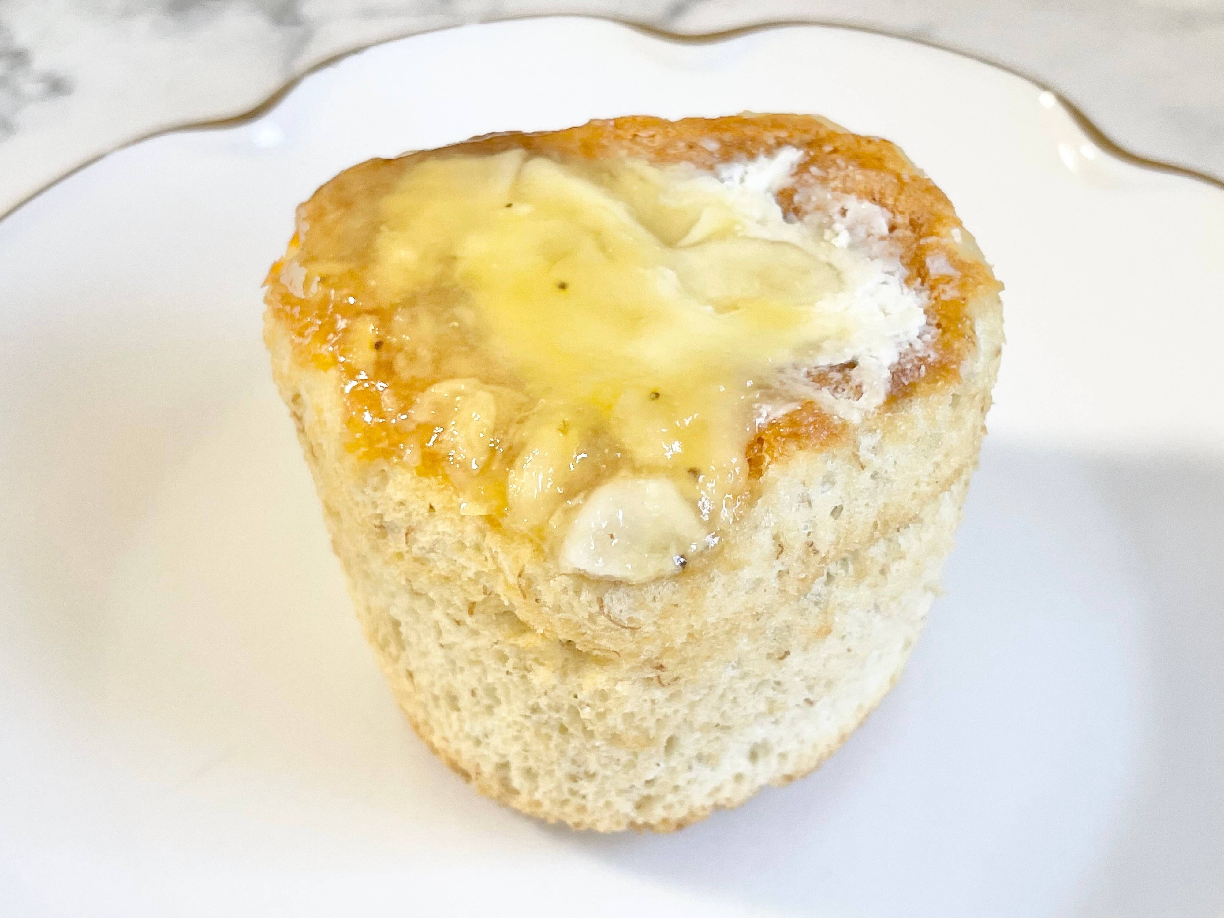 別立てしたメレンゲと生バナナを使用したふんわり食感の生地に、ホイップクリームが入っています。