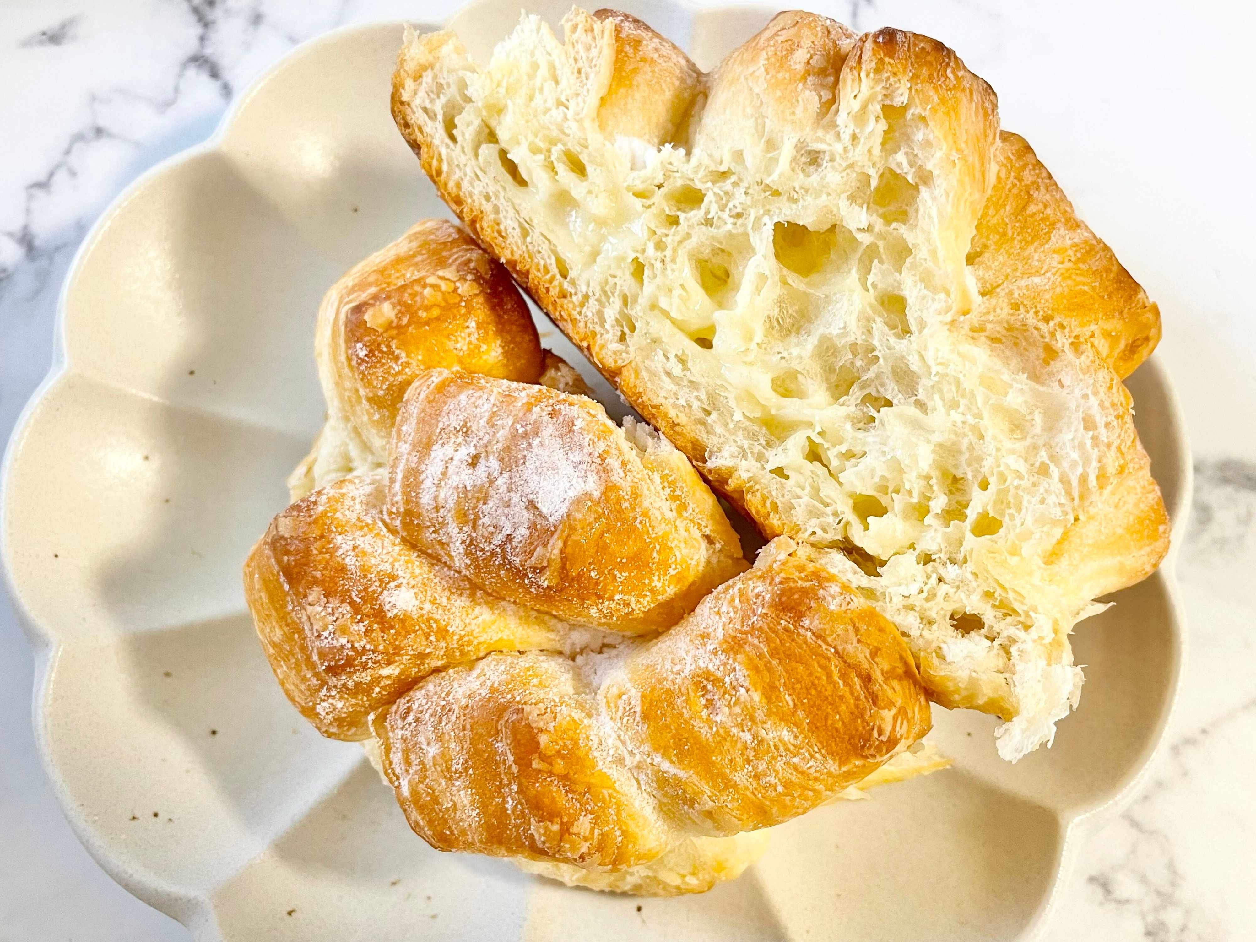 ちぎりながら楽しめます。トッピングされた粉糖が舞うので注意しましょう。