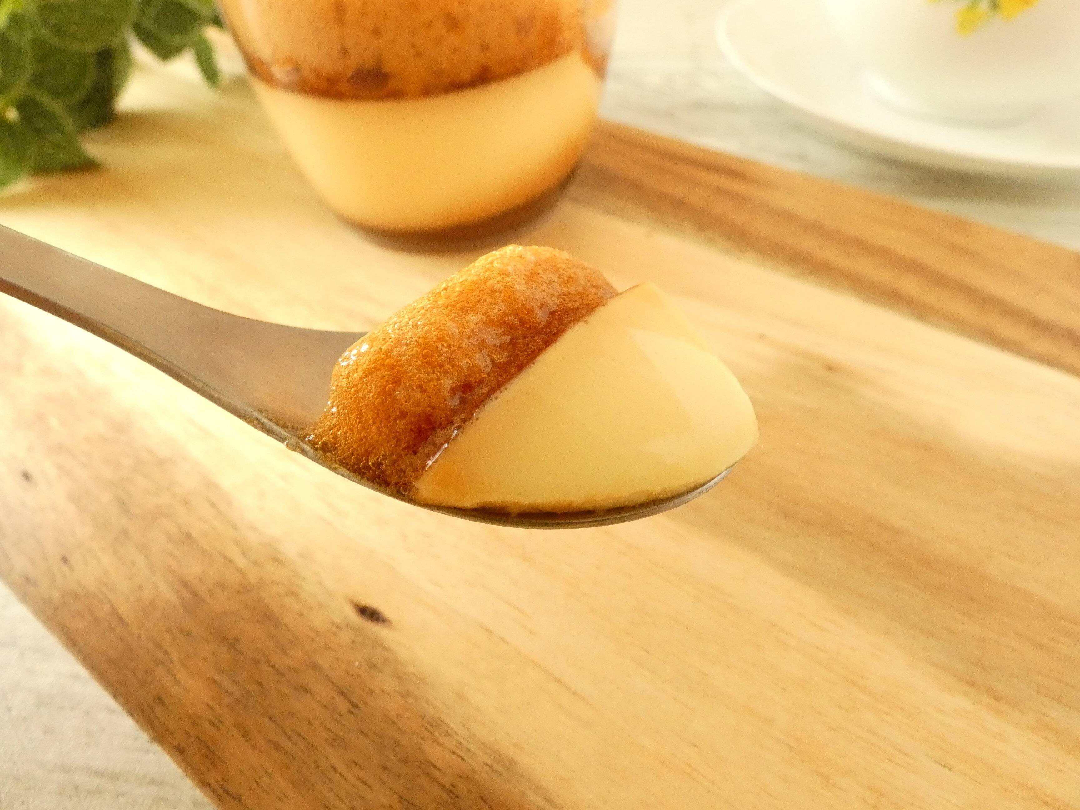 プリンはほどよい堅さで、食べるとなめらかで卵の味をしっかり感じます。一番下のカラメルソースは苦みがありますが、プリンと一緒に食べるとちょうどいいアクセントになります。泡カラメルとなめらかプリン、カラメルソースを一緒に食べると絶妙な美味しさ。最後まシュワシュワの泡を楽しみながら食べられる新感覚スイーツなので、ぜひお試しください。