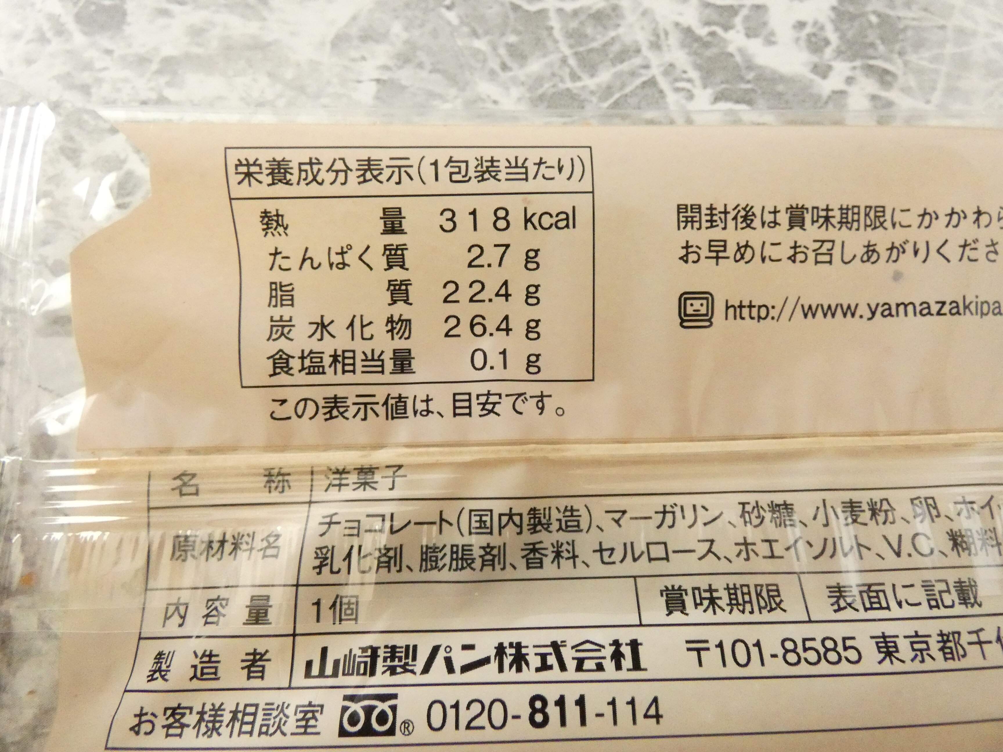 栄養成分表示を見ると、1個のエネルギーは318kcalです。
