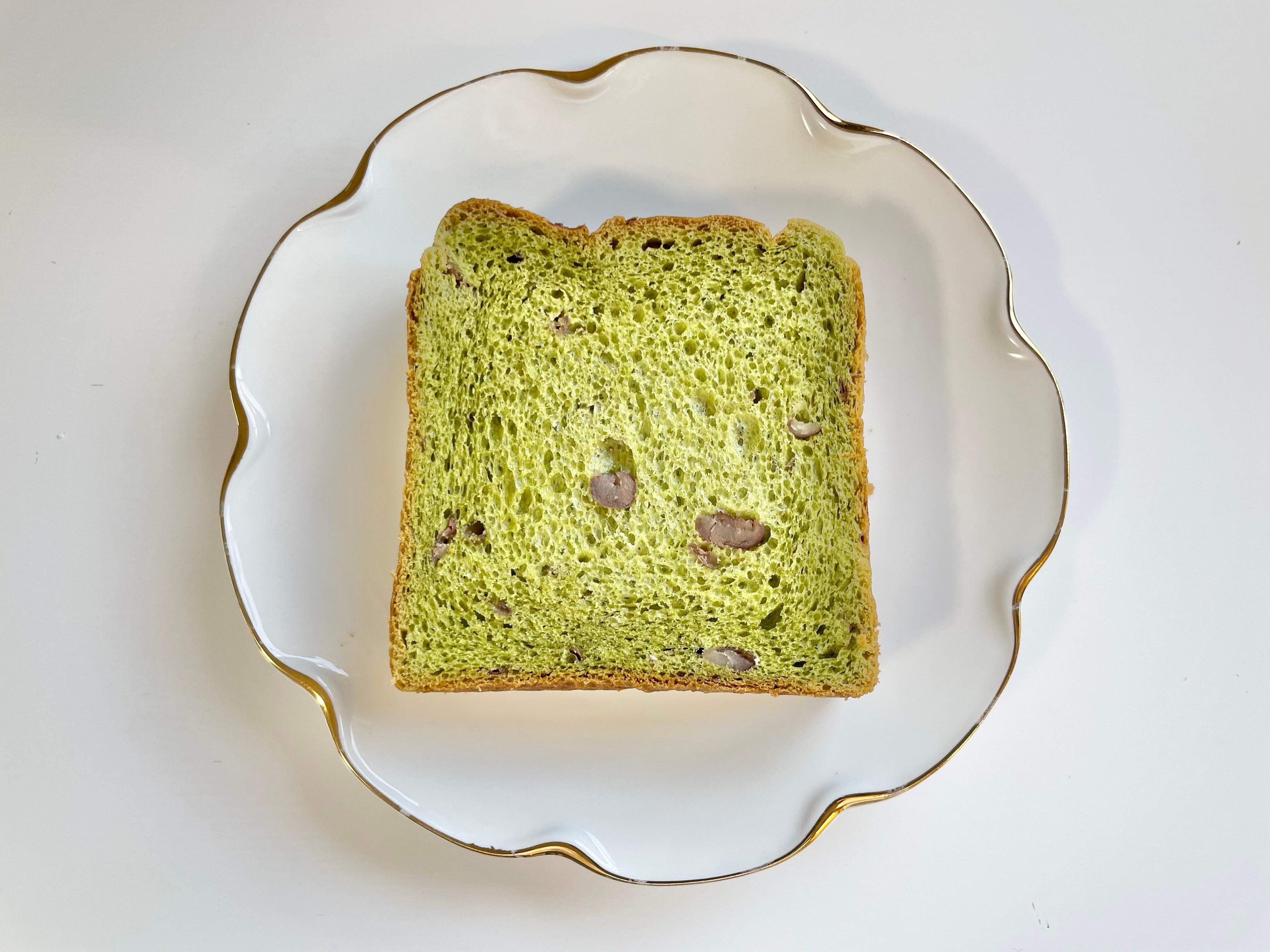 袋から出してみると、あずきが練り込まれた鮮やかな緑色の食パンが出てきました。