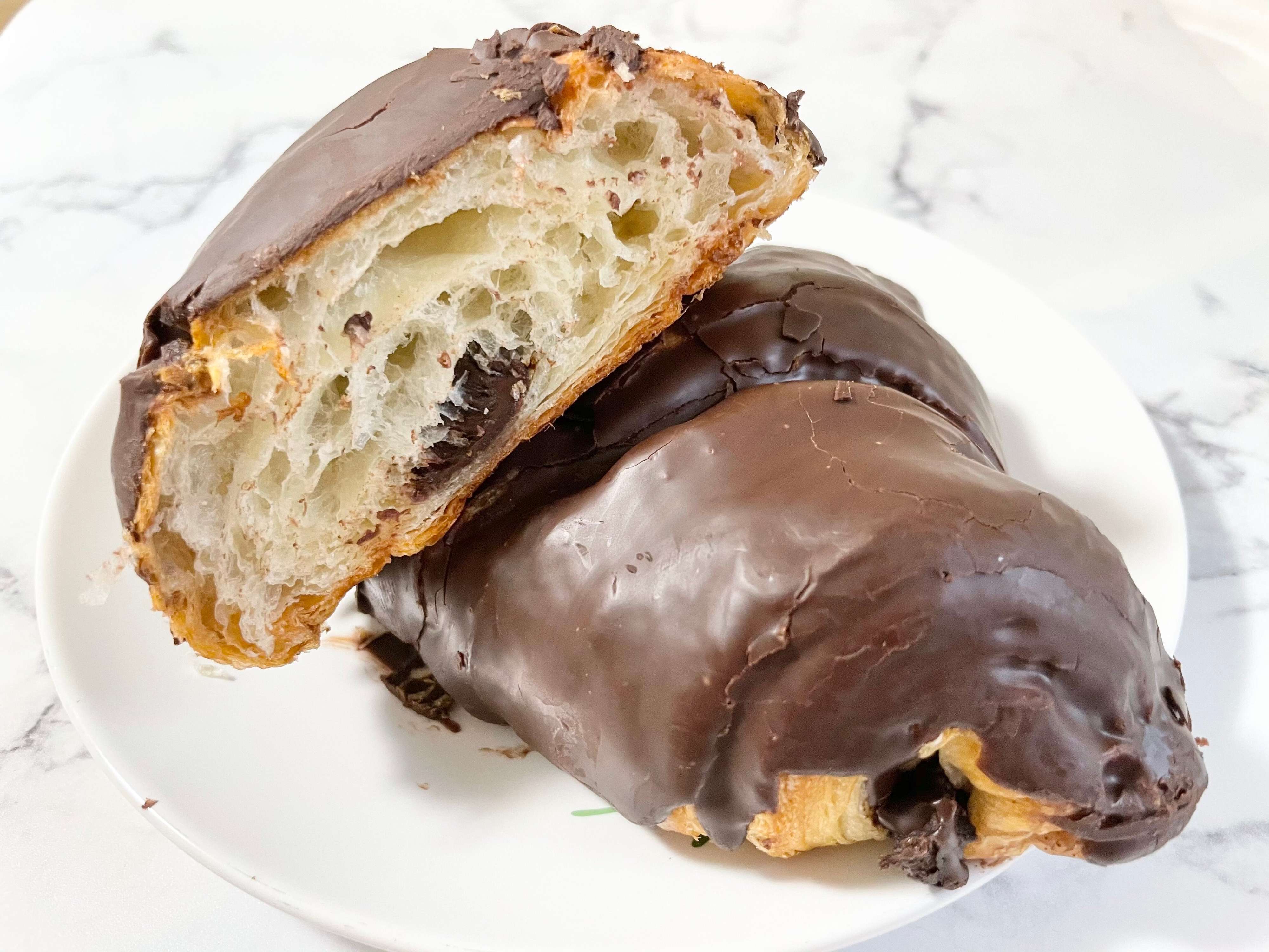 全面的にチョココーティングされていて、一見クロワッサンだと気づきません。