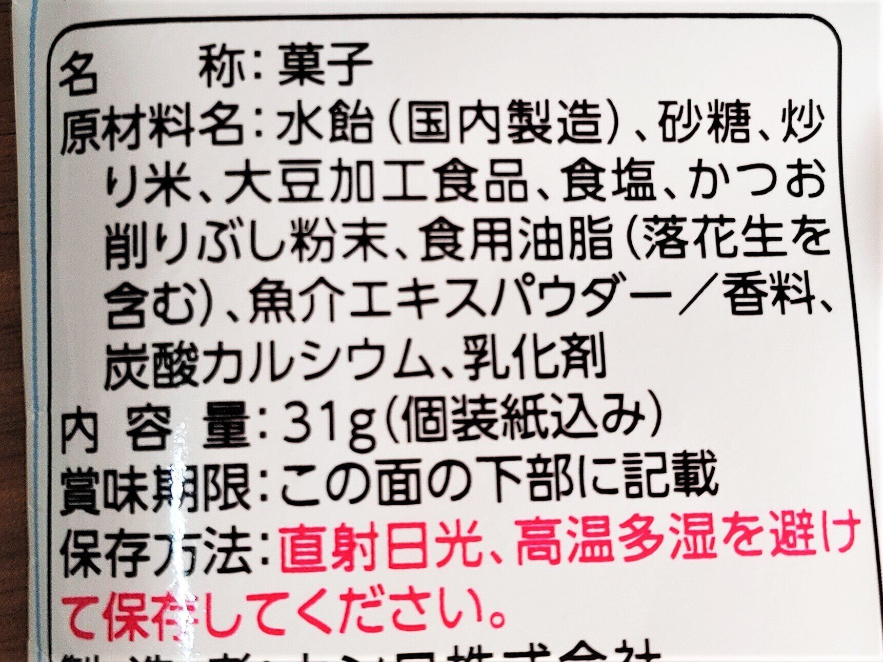 原材料名を確認したら水飴を基に、”かつお削りぶし粉末“と”魚介エキスパウダー“が配合されています。