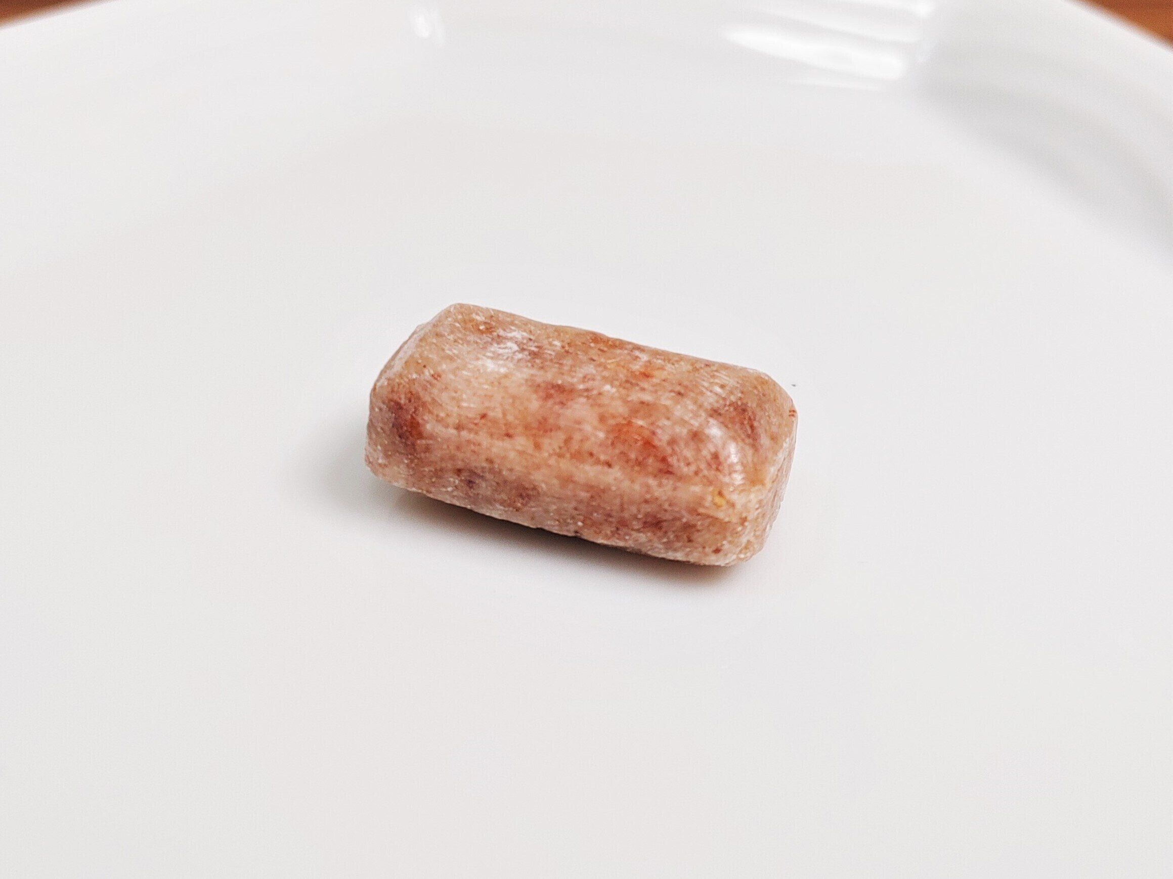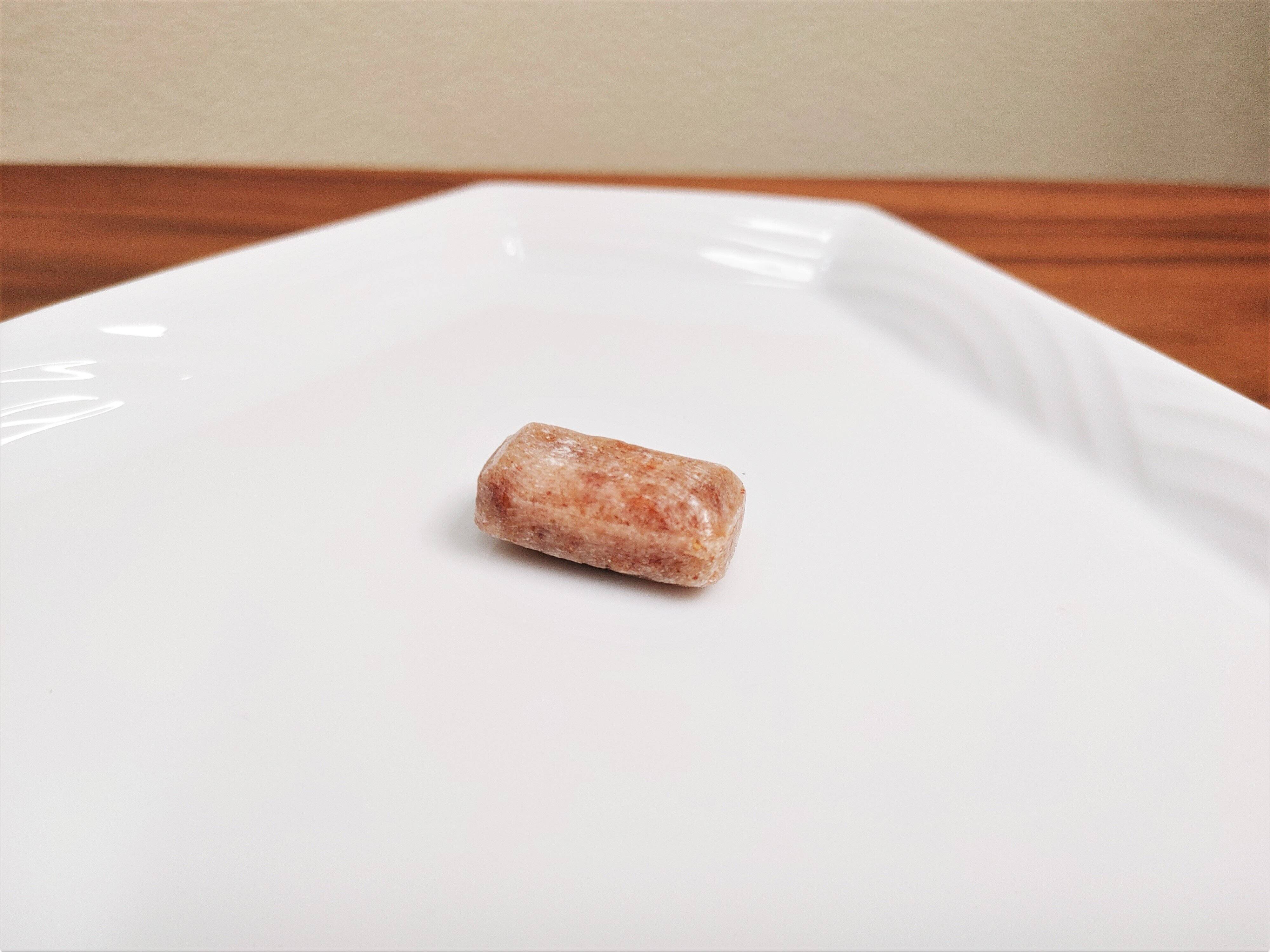 通常、猫のカリカリは焼成しているのでクッキーやスナックのような見た目と質感ですが、人間用は飴をカリカリに模した仕様になっています。