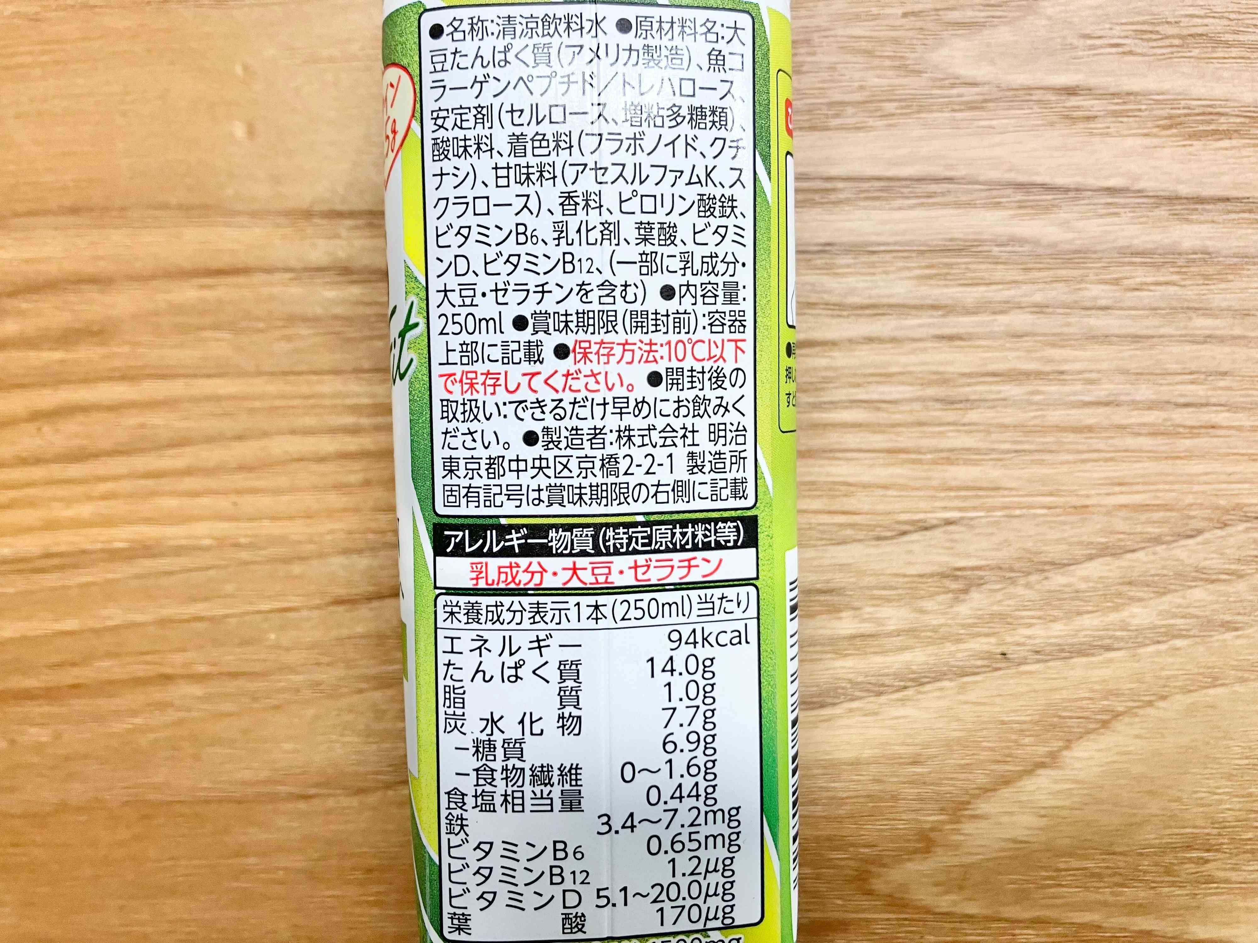 抹茶の味と大豆の味がうまく混ざり合っていて、運動後にも飲みやすそうなすっきりとした味わい。抹茶味の豆乳よりも軽い感じがします。抹茶風味なので、抹茶の味もそこまで強くありません。ただ、少し独特な味もするので、苦手な方もいるかと思います。