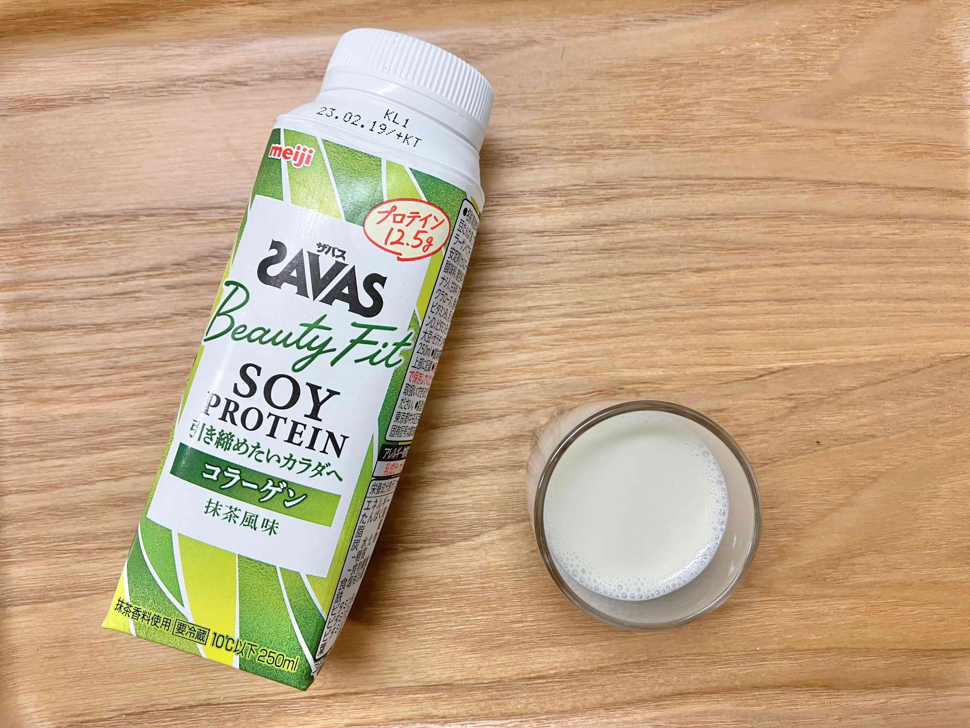 抹茶風味で、様々なシーンで飲みやすい味となっています。女性に嬉しい成分が沢山入った「SAVAS SOY PROTEIN Beauty Fit コラーゲン」。今回はこちらをレポートします!