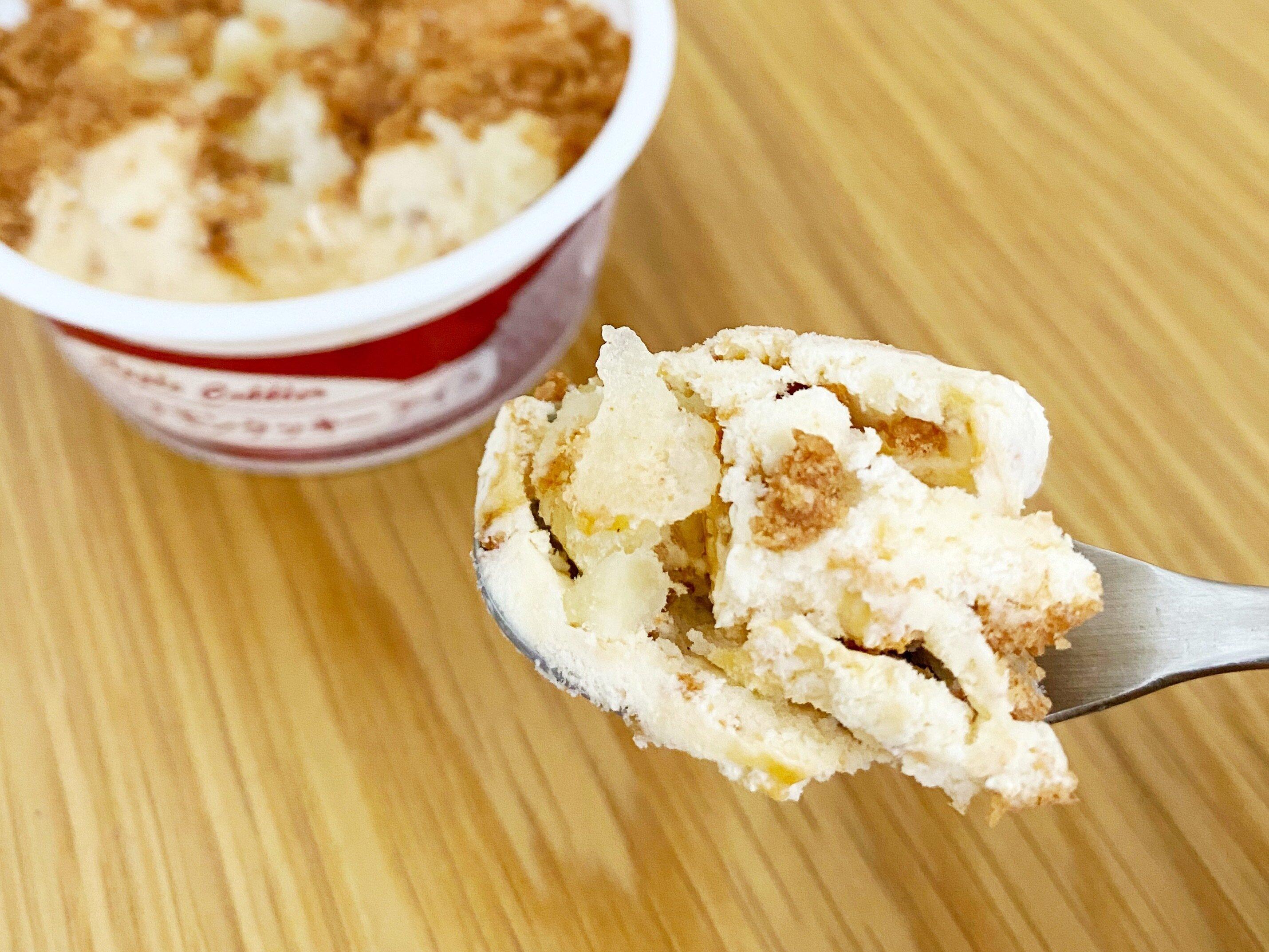 そこにりんごのシャキシャキ食感と果実感、シナモンクッキーの風味が加わり絶妙なバランスに〜。まるでアップルパイを食べているような気分にさせてくれます。