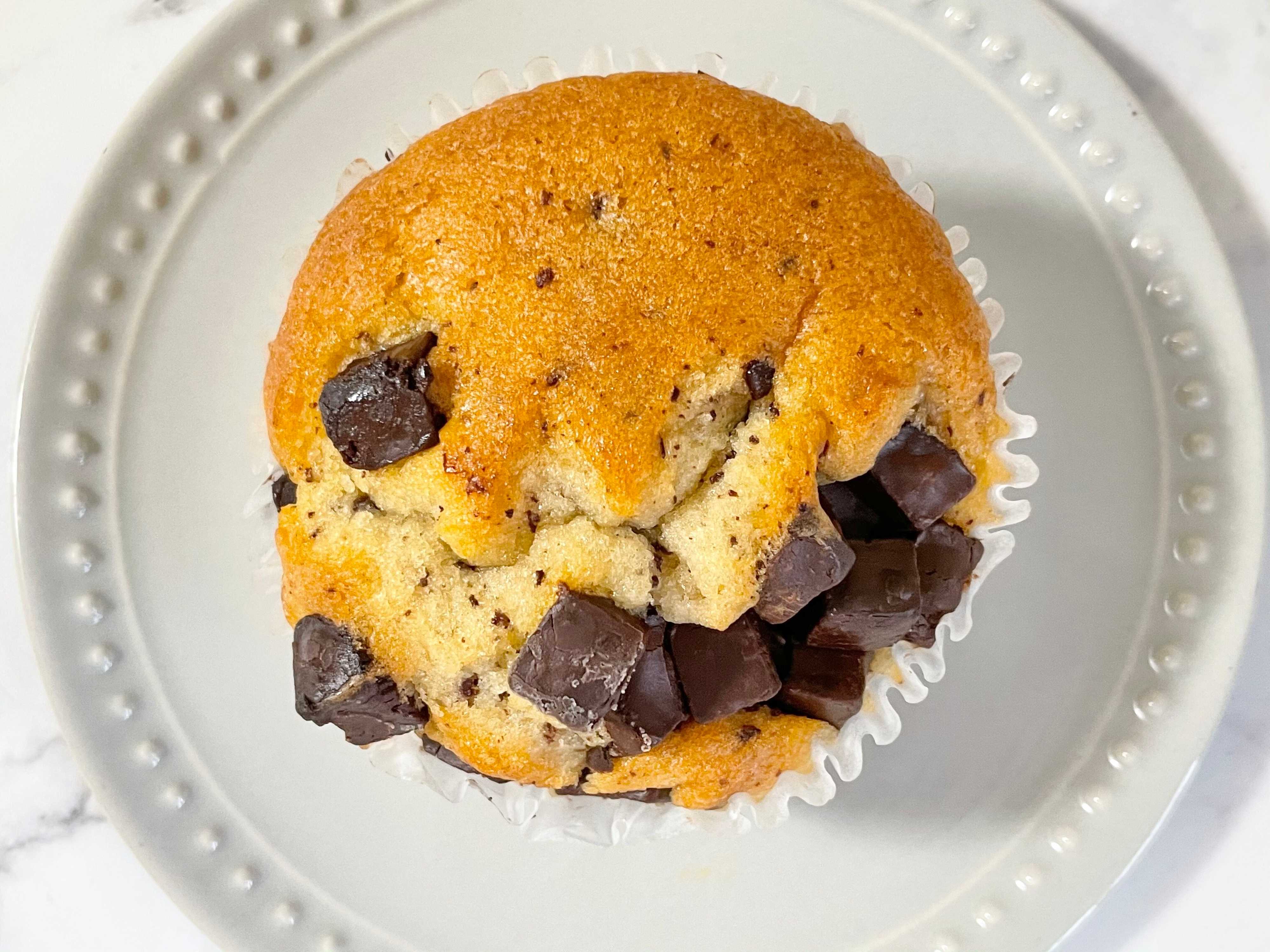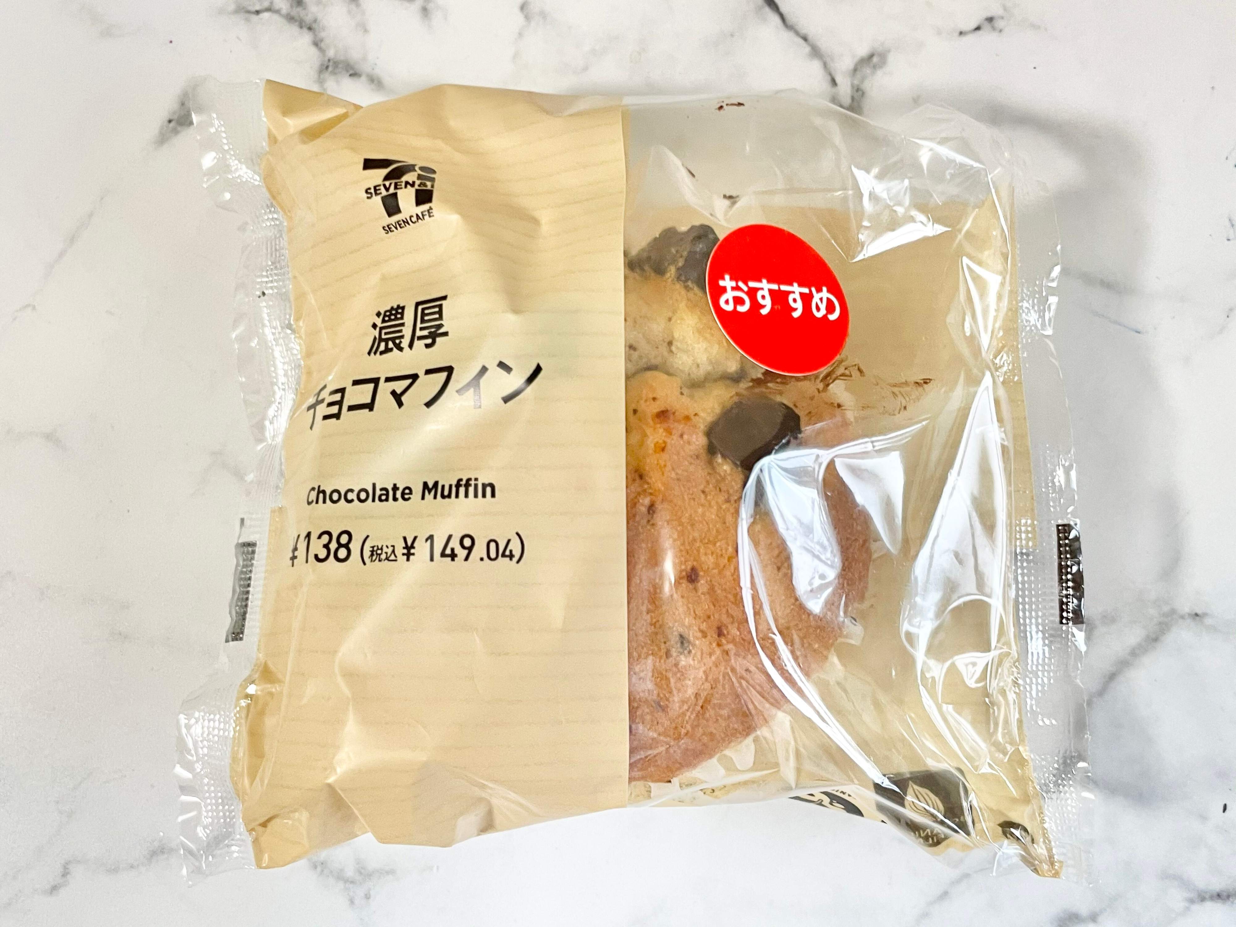 見た目と食感に特徴のあるチョコをトッピングしたチョコマフィンで、サイズは手のひらほど。価格は149円とコンビニベーカリーの中では少々お高いです。