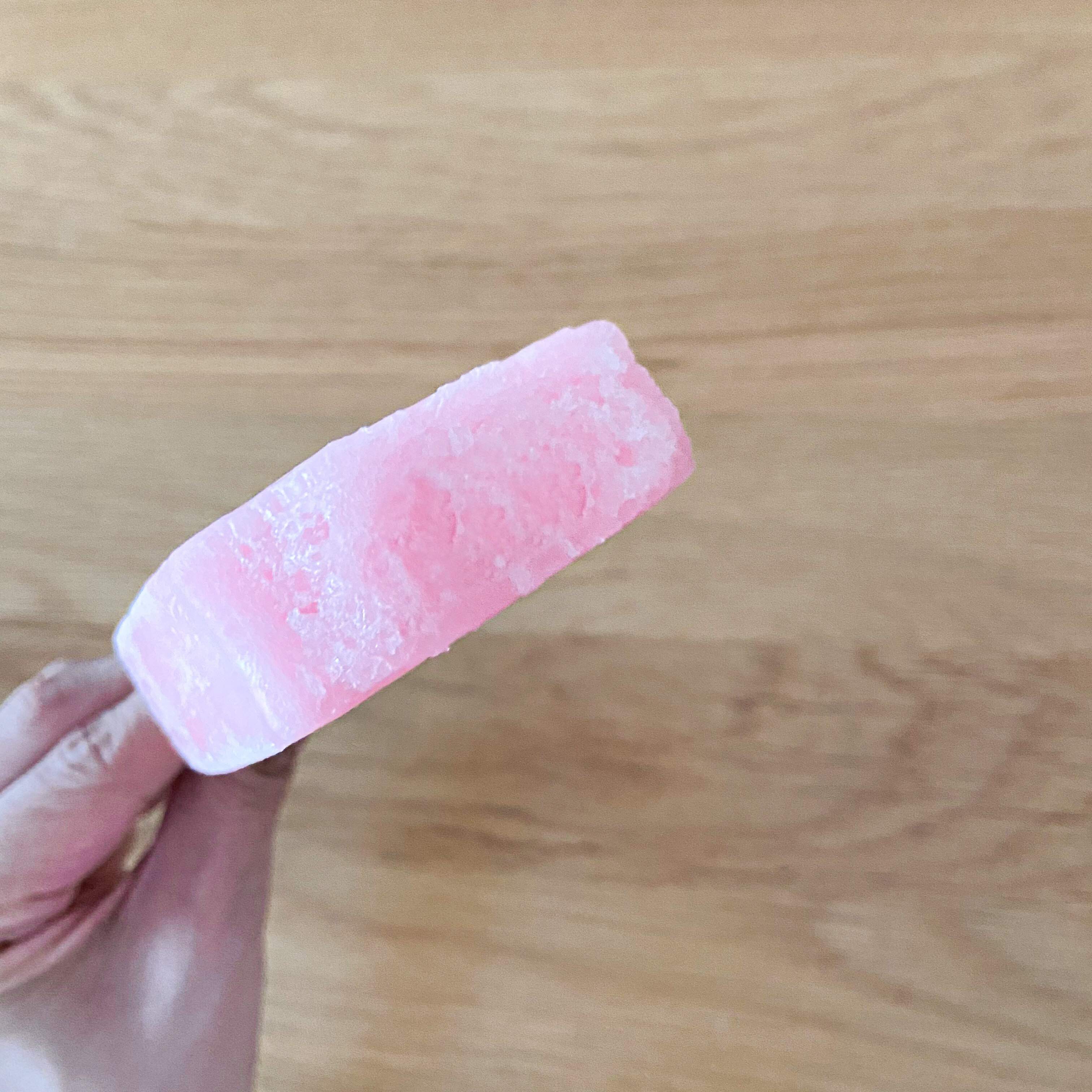 かじると、うめの風味が口いっぱいに広がりました。シャクっとジューシーなうめ味のアイスの中に、ザクザクのうめ氷が。それが口の中で混ざり合ってジュワッと溶けるのがたまりません!
