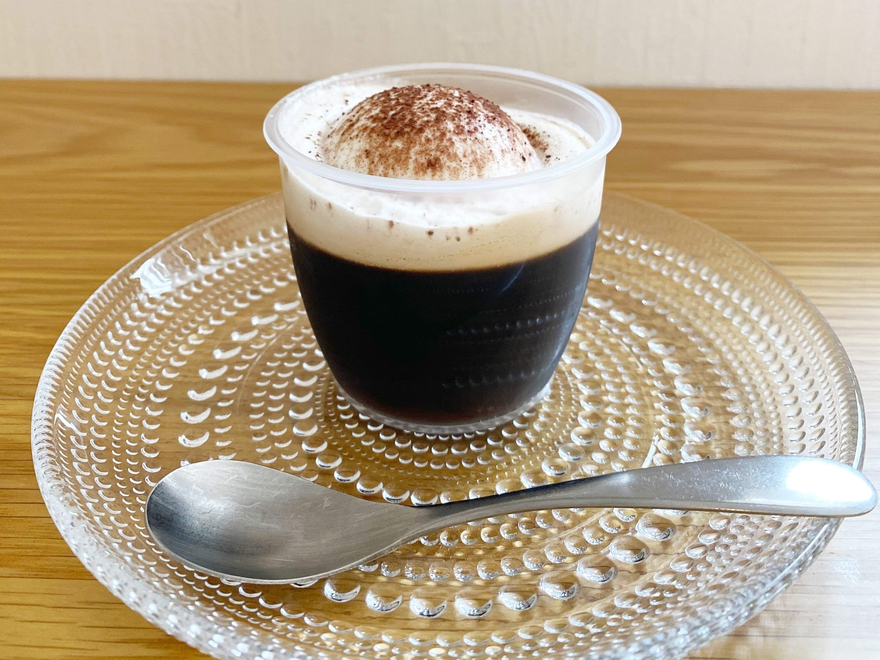下層からコーヒーゼリー、クリーム、練乳入りムース、ココアパウダーとなっています。