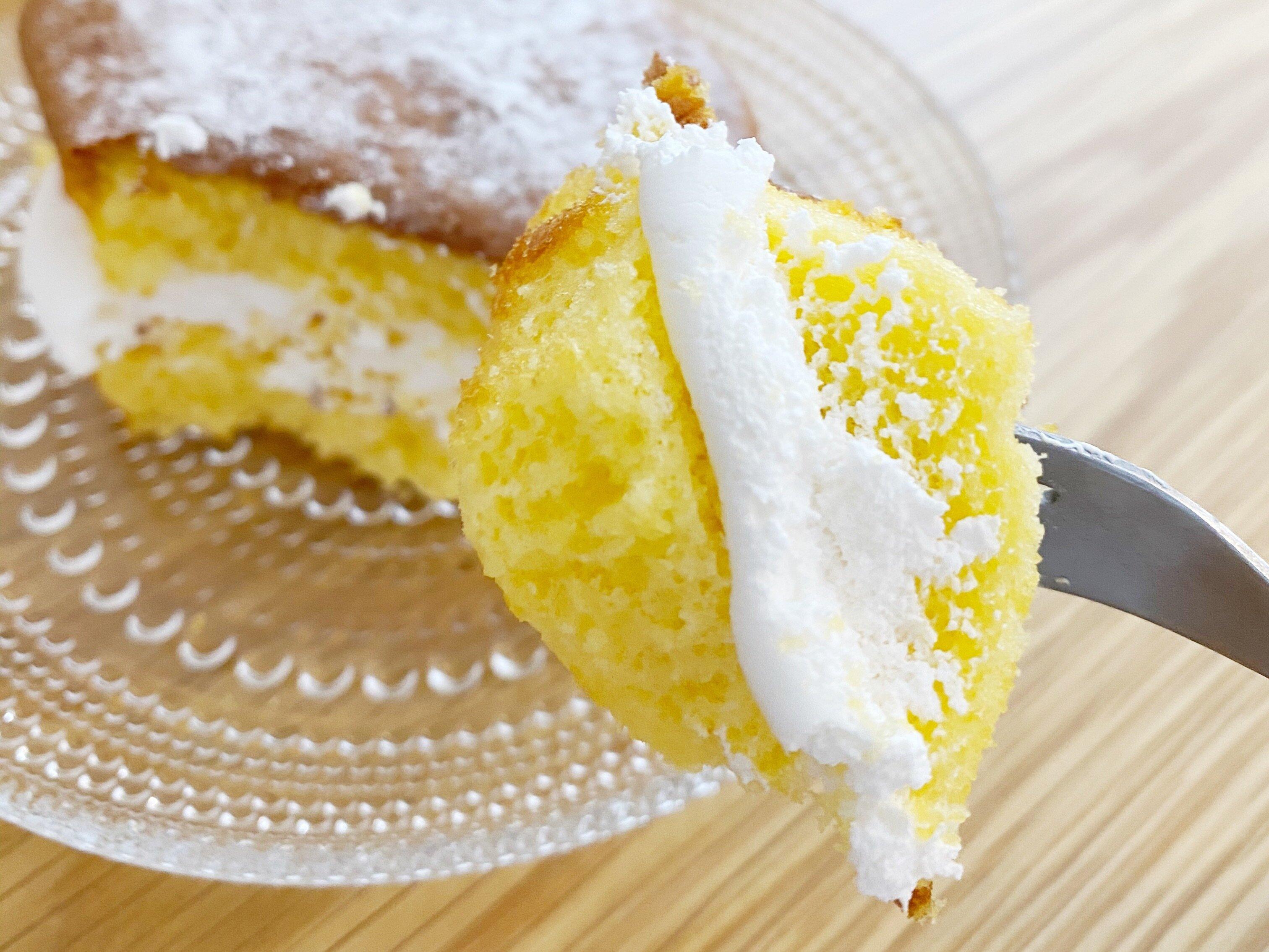 天面にフォークを入れた瞬間は「ん?かたい?」と感じましたが、その後はスーッとフォークが入っていきました。