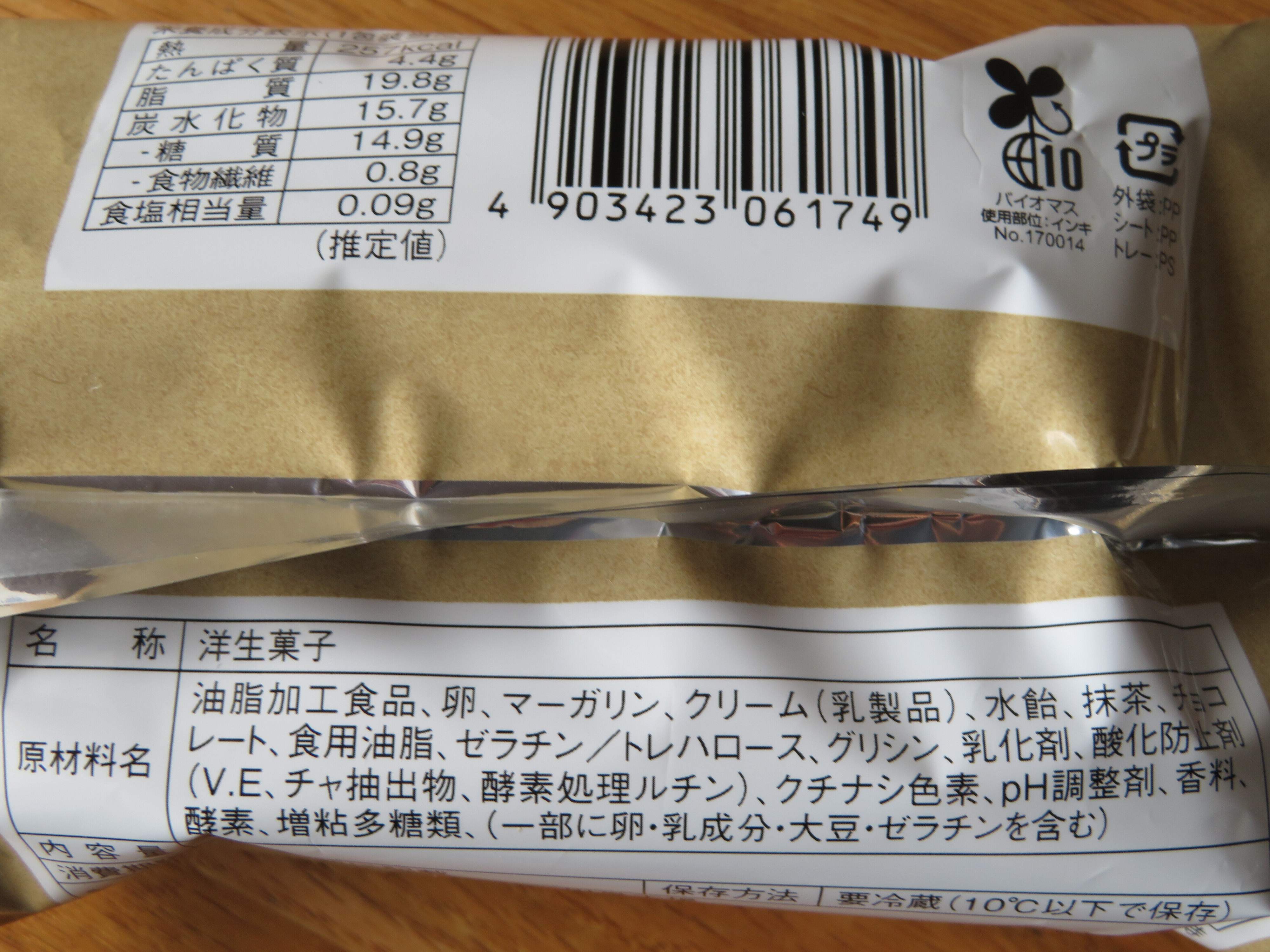中が見えないパッケージなのは、抹茶の風味を損なわないためなのかと思います。抹茶好きの私の調べによると、抹茶スイーツは光を通さない包装に入っていることが多いのです。それだけ繊細なのですね。