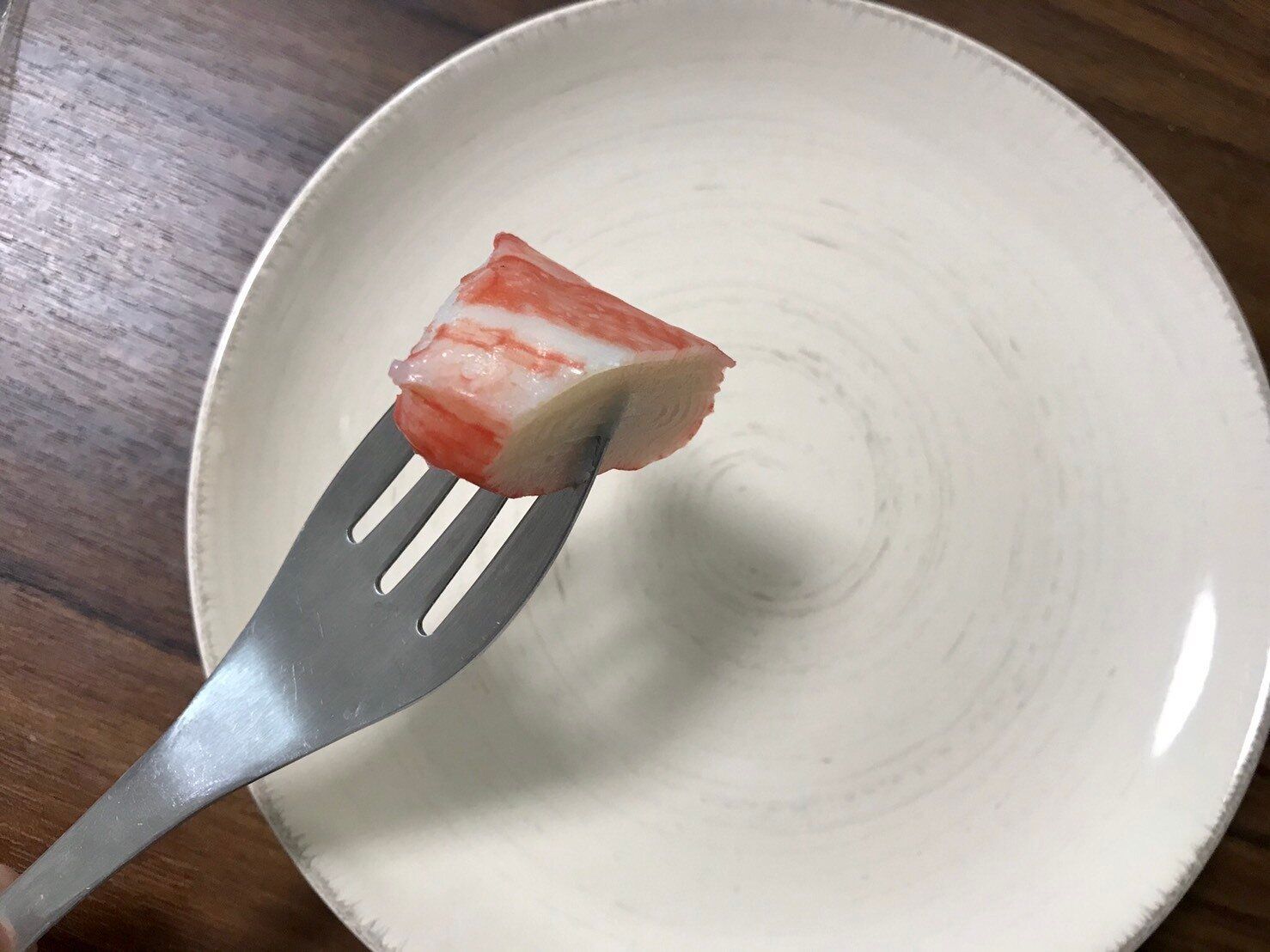 実際にいただいてみると……おいしい!通常のカニカマと味は似ていますが、弾力がありなかなかの噛み応えです。