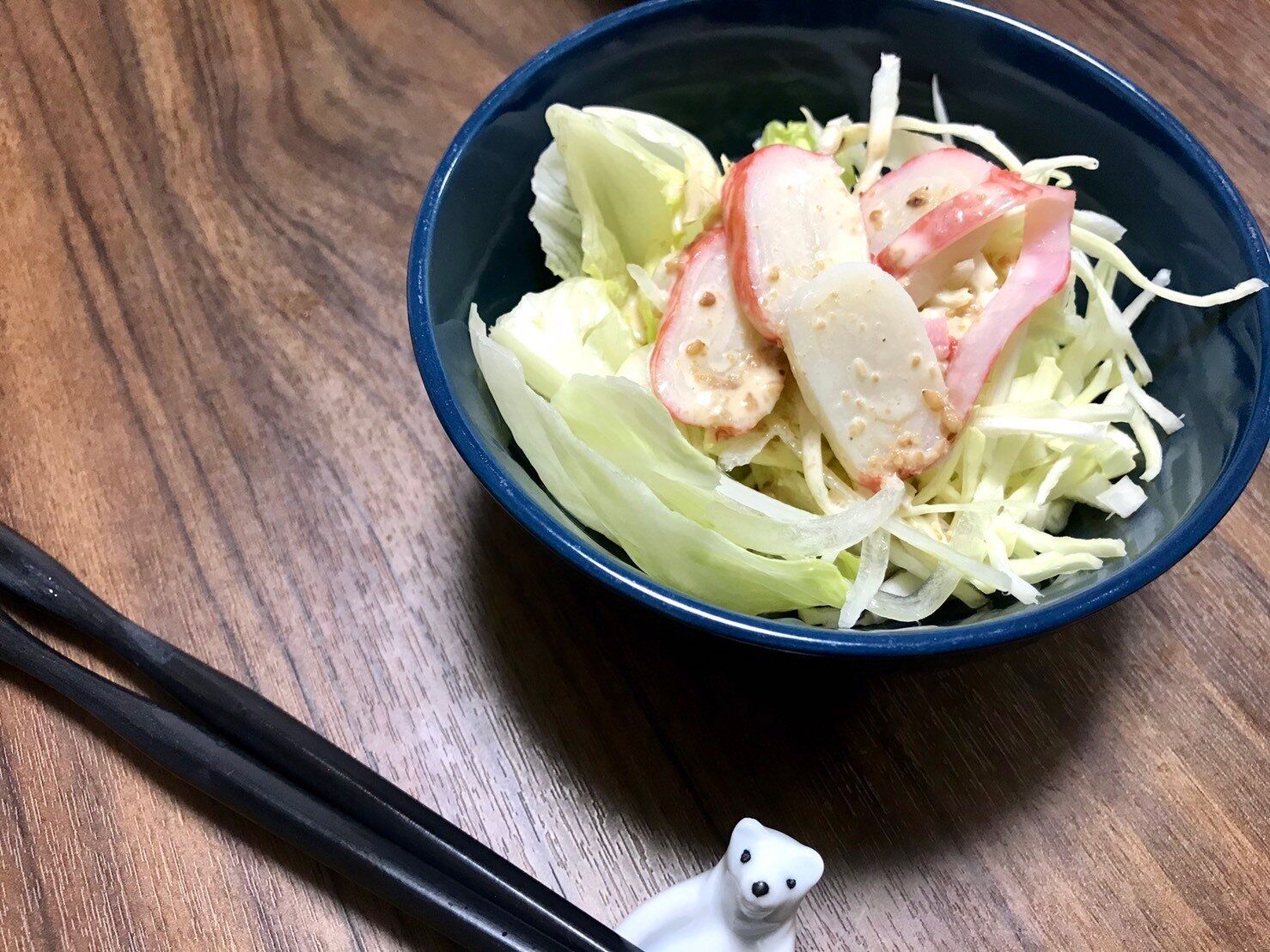 そのままだと食べづらいと感じる方にオススメの食べ方として、カニカマバーはサラダのトッピングに。