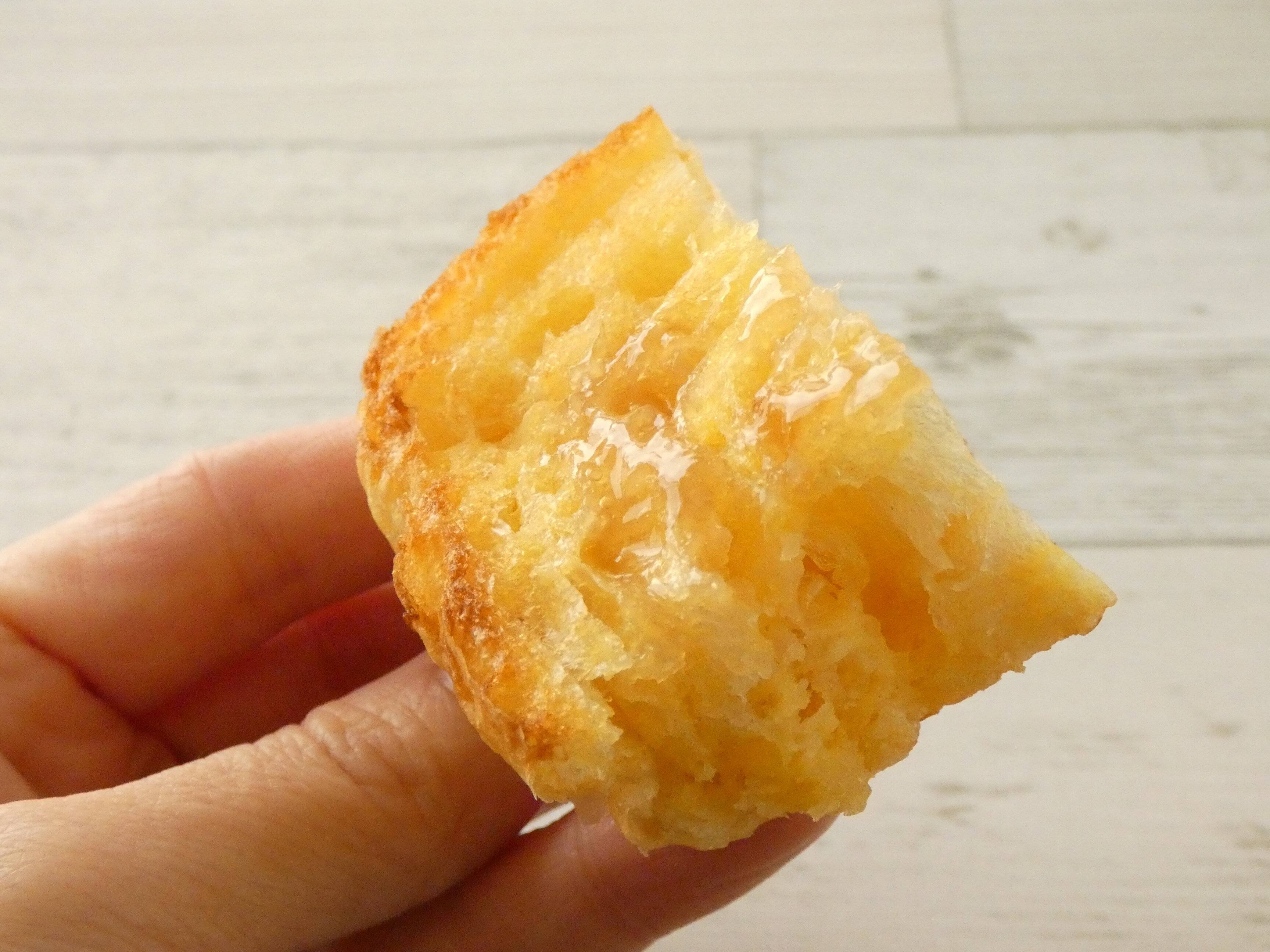 まずは冷たいまま食べてみました。フレンチ液をたっぷり含んでいるのでしっとりして、デニッシュ生地なのでしっかりした食感です。