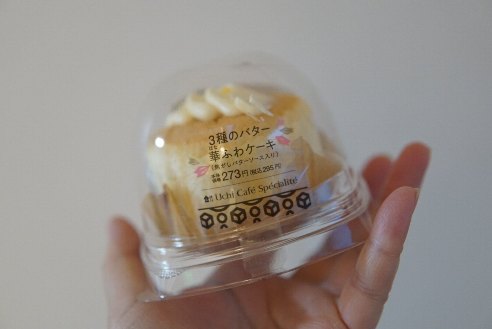 春のUchi Café Spécialitéシリーズの1つとして販売されたのが、こちらの「3種のバター華ふわケーキ(焦がしバターソース入り)」です。まずは基本情報から。