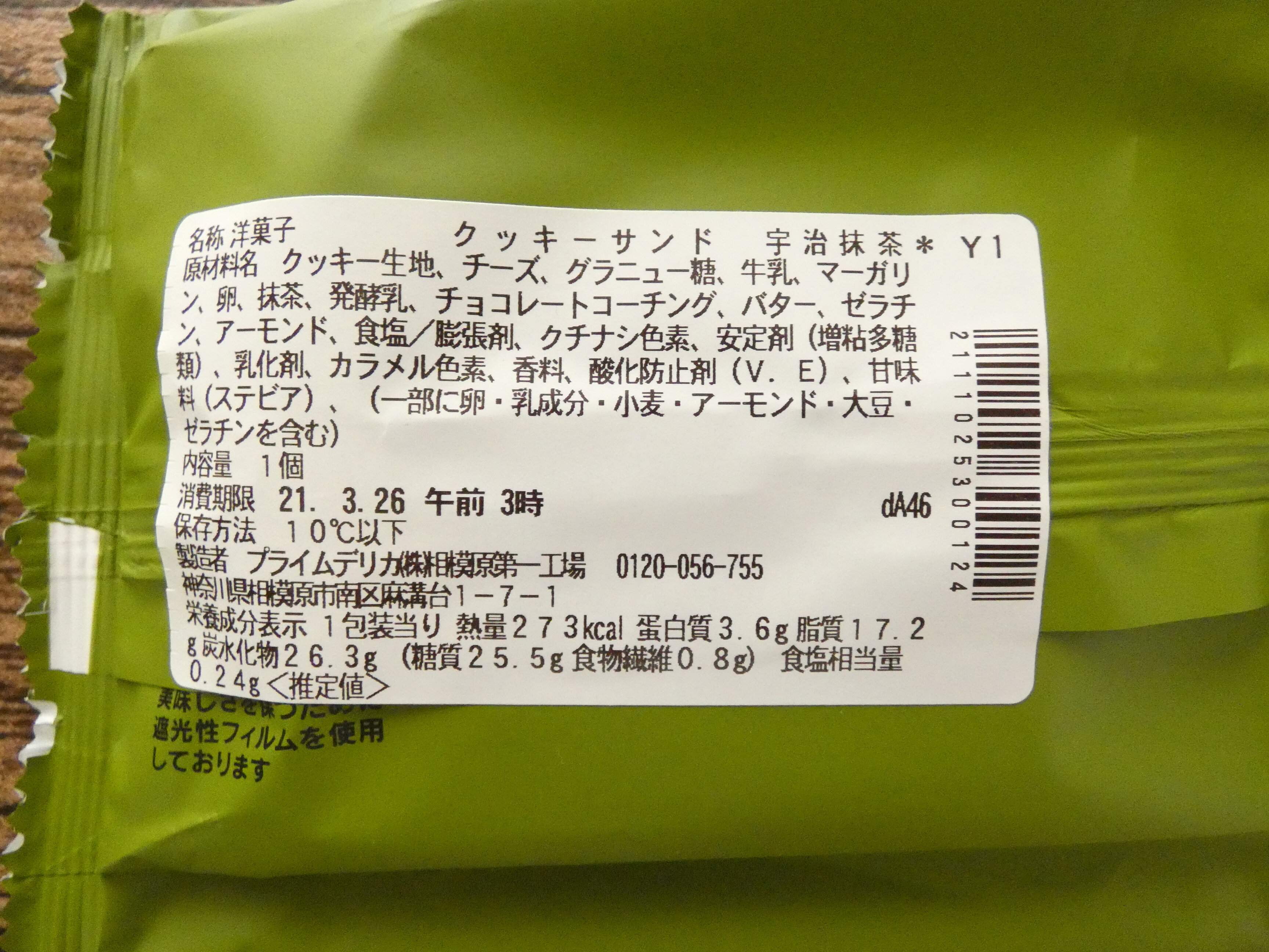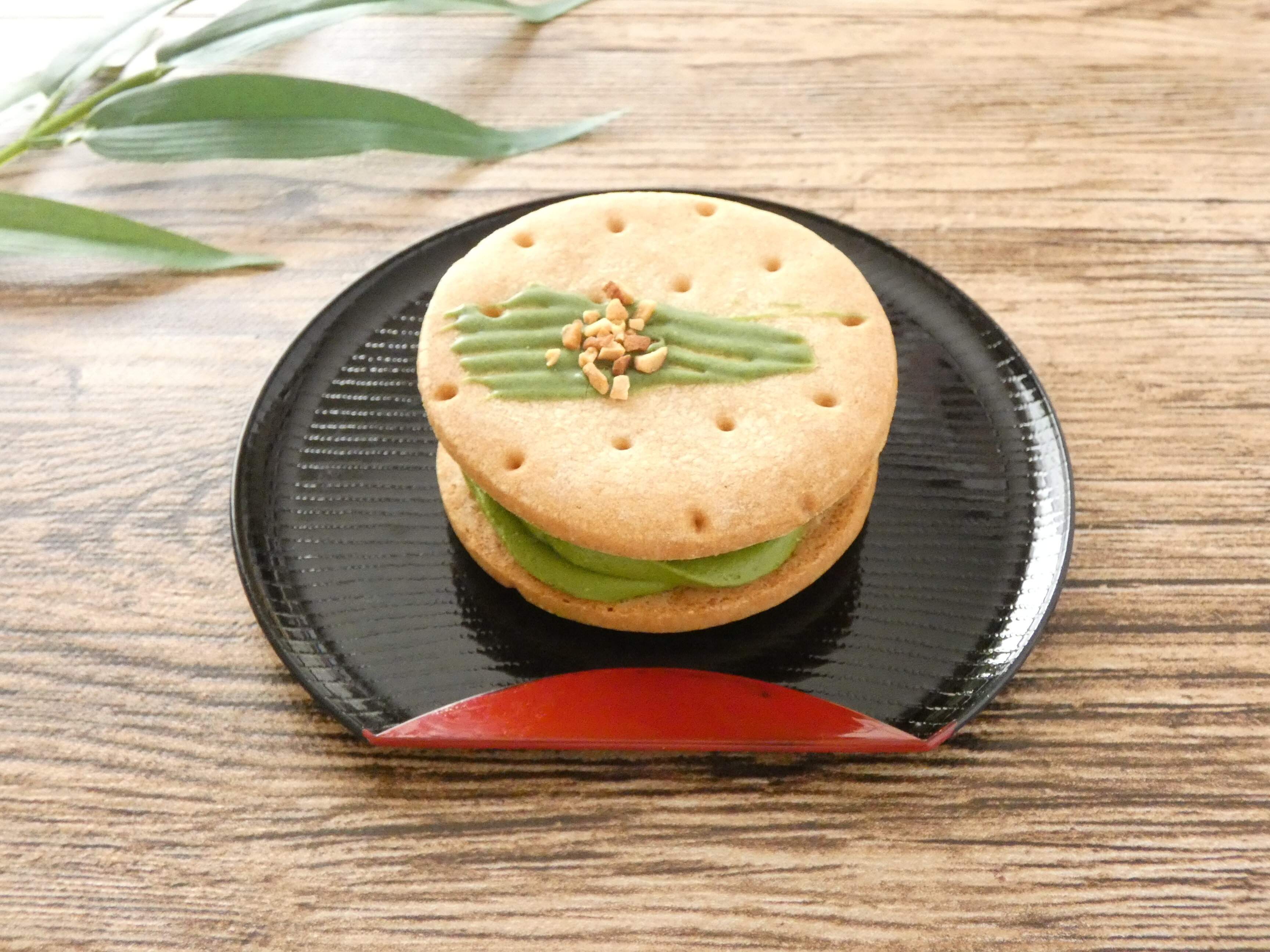 厚めのクッキーの上には抹茶入りチョコがかかっていて、上にはローストアーモンドがトッピングされています。