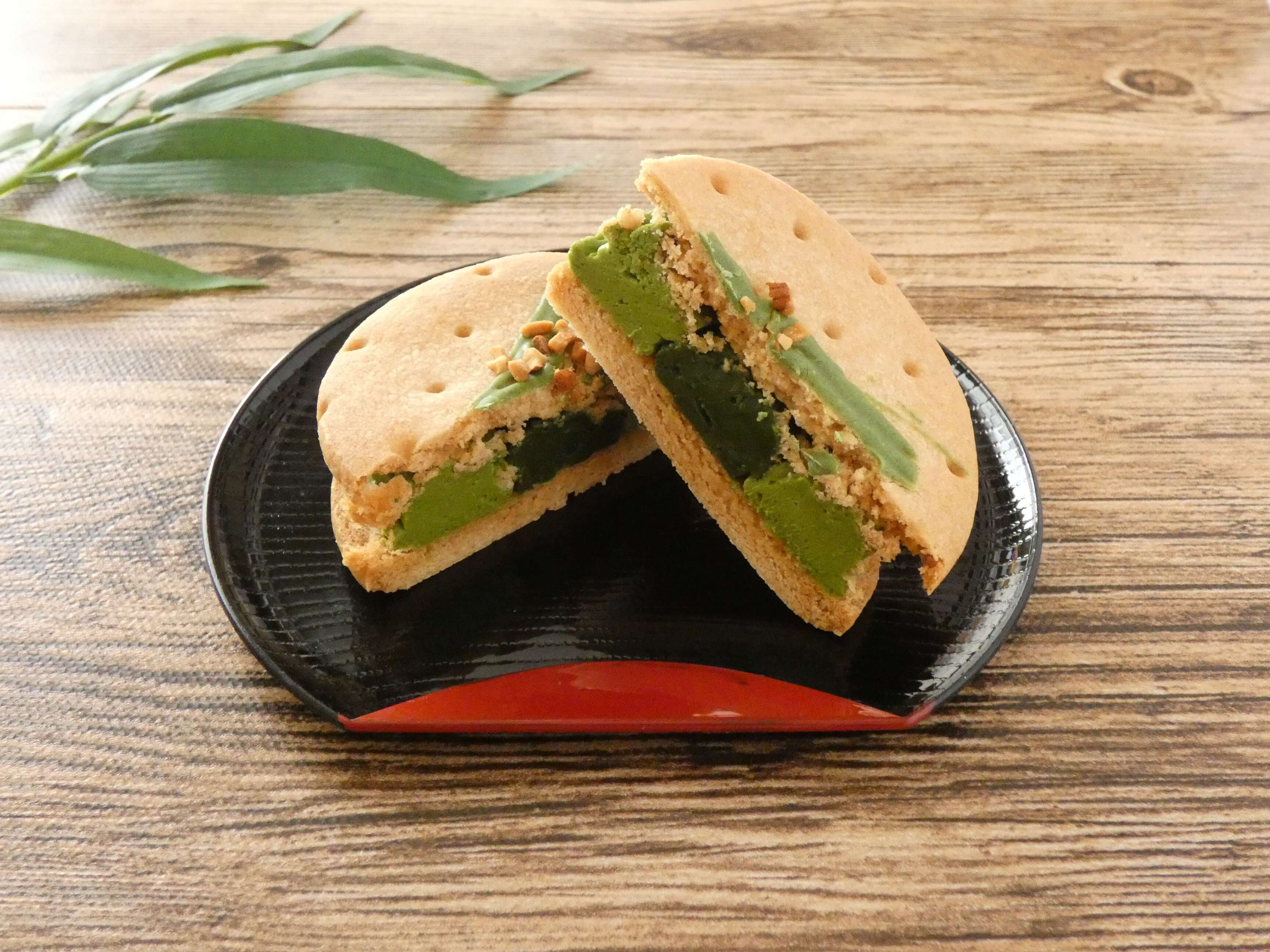 中には抹茶チーズクリームと抹茶ソースがたっぷりサンドされています。