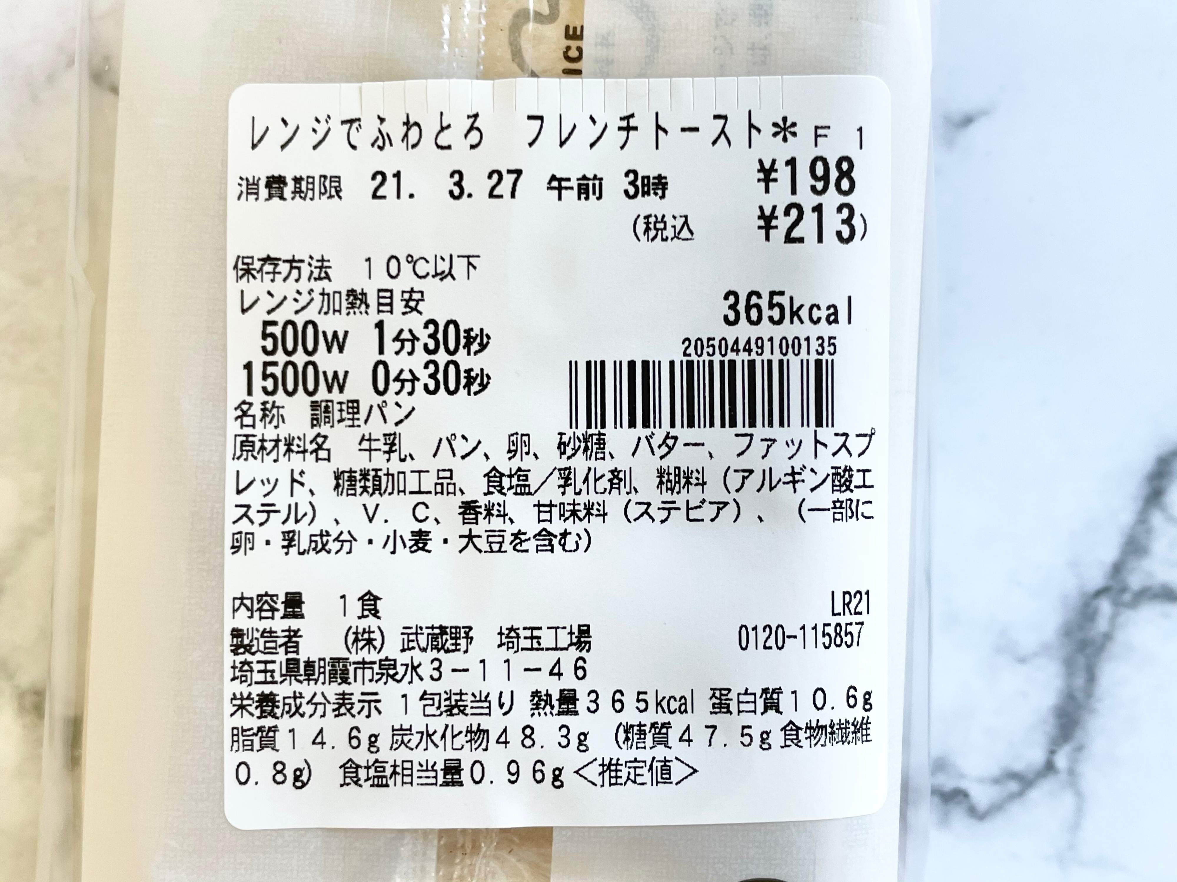 「レンジでふわとろ フレンチトースト」税込213円
