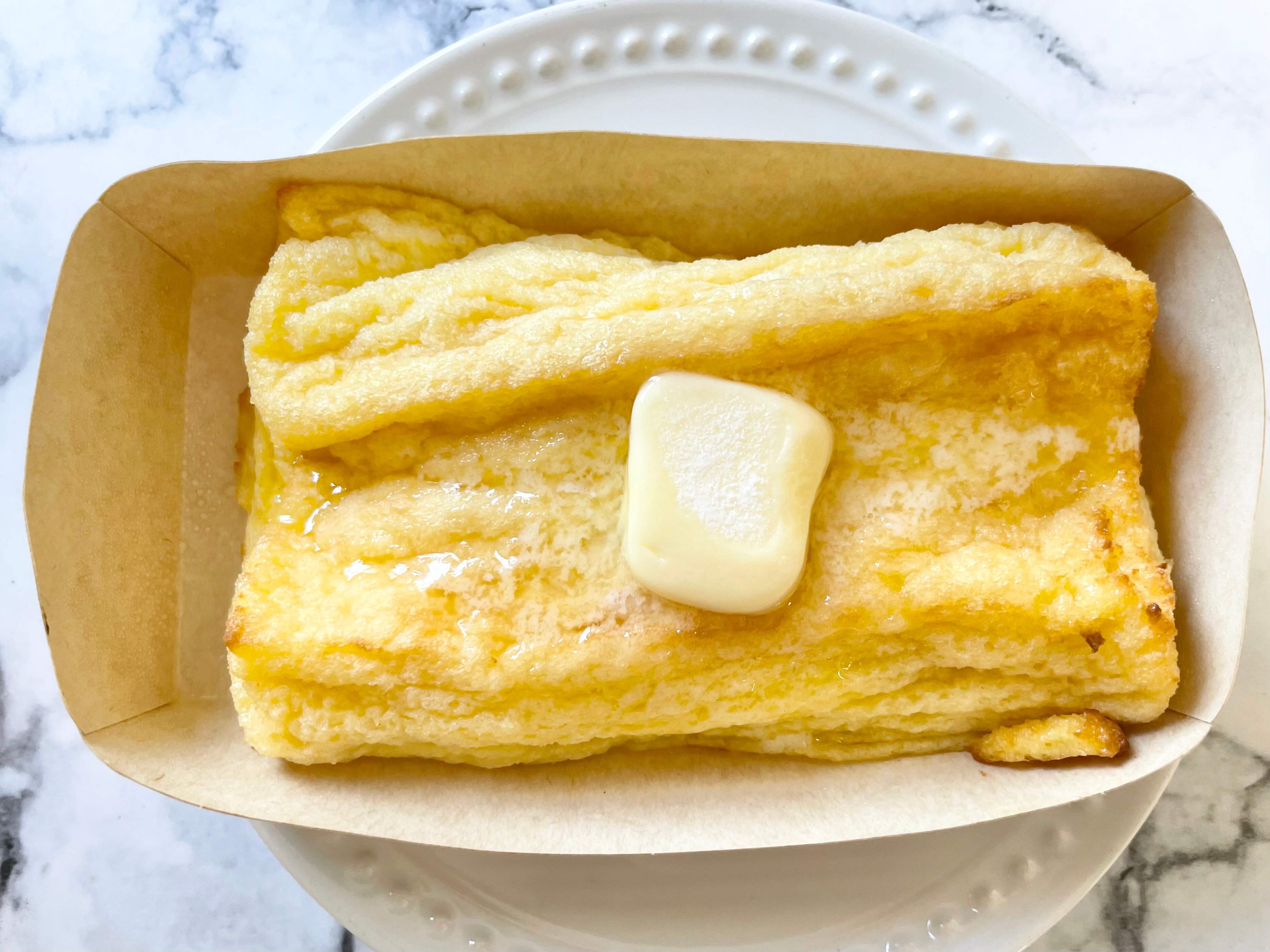 カフェのフレンチトーストを食べているみたい。このバターのじゅわ~と染みわたる感じがいいですね。甘党なのでメープルソースがあったらより嬉しかったかも。食事に近いフレンチトーストです。