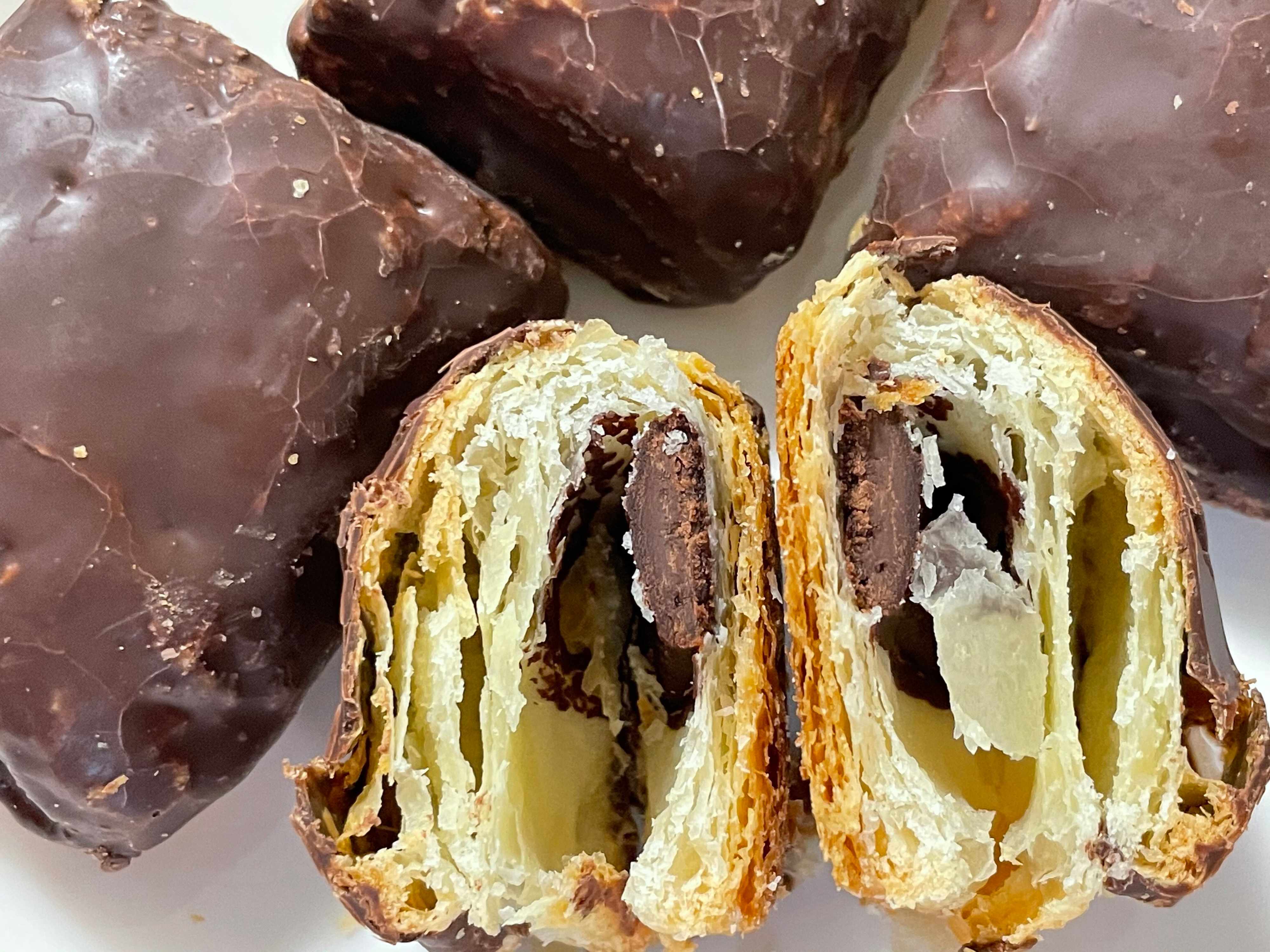 外のチョコレートはパリパリ、中のチョコはカリっとします。
