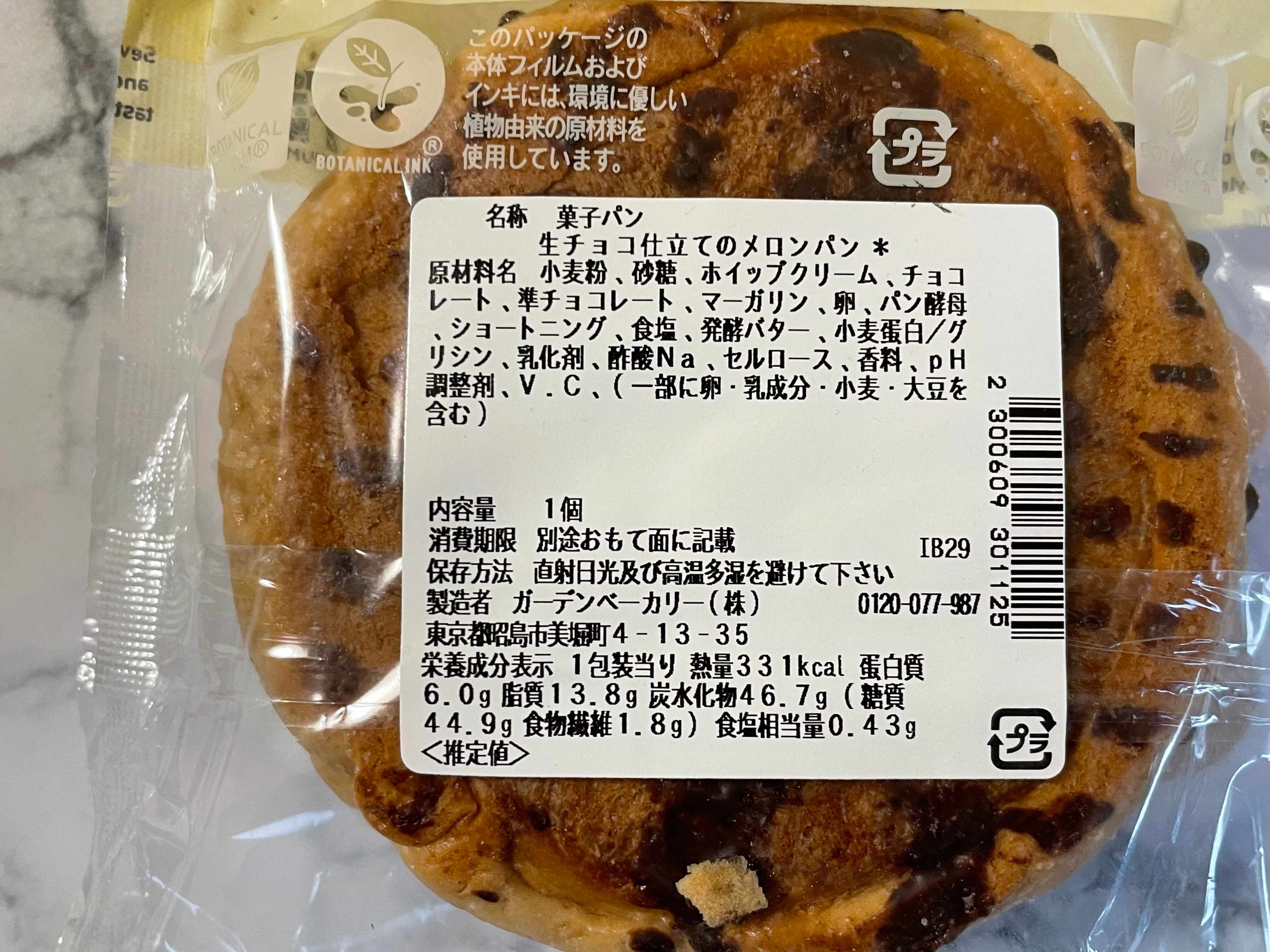 チョコづくしのメロンパンなので500kcalくらいあるんじゃないかと恐る恐る確認すると、意外にも331kcalと思っていたよりは低かったです。
