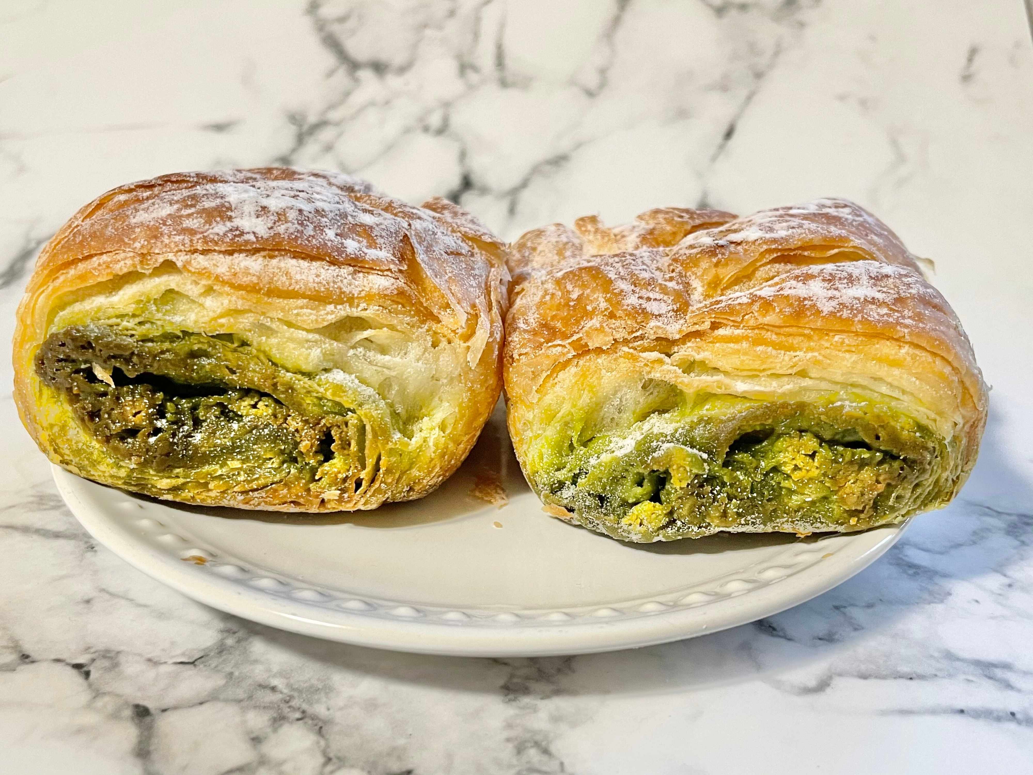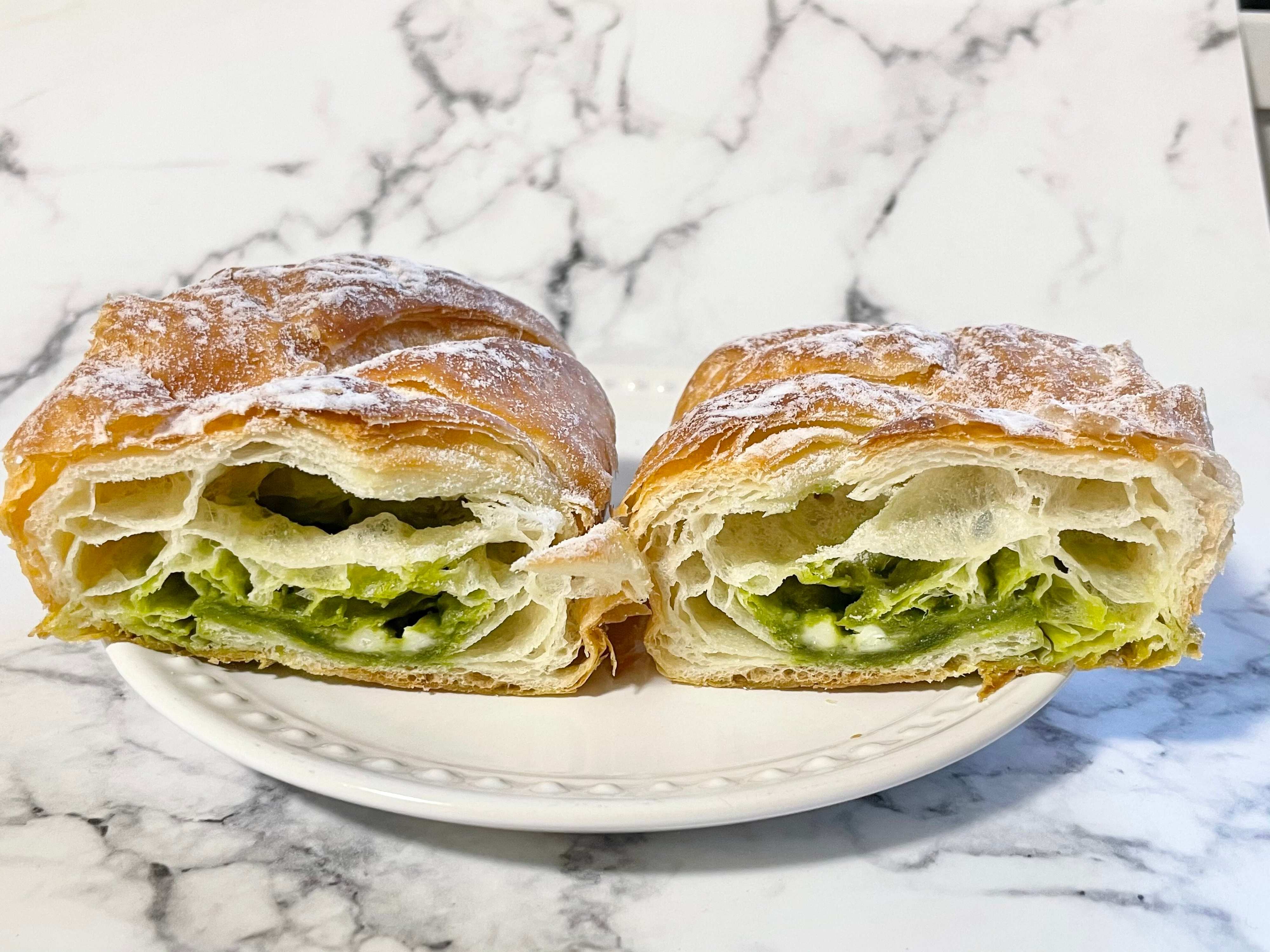 バブカはニューヨークで人気のシナモン香るチョコを巻き込んだデニッシュ。今回は、抹茶フィリングとホワイトチョコチップをデニッシュ生地に巻き込んでいます。