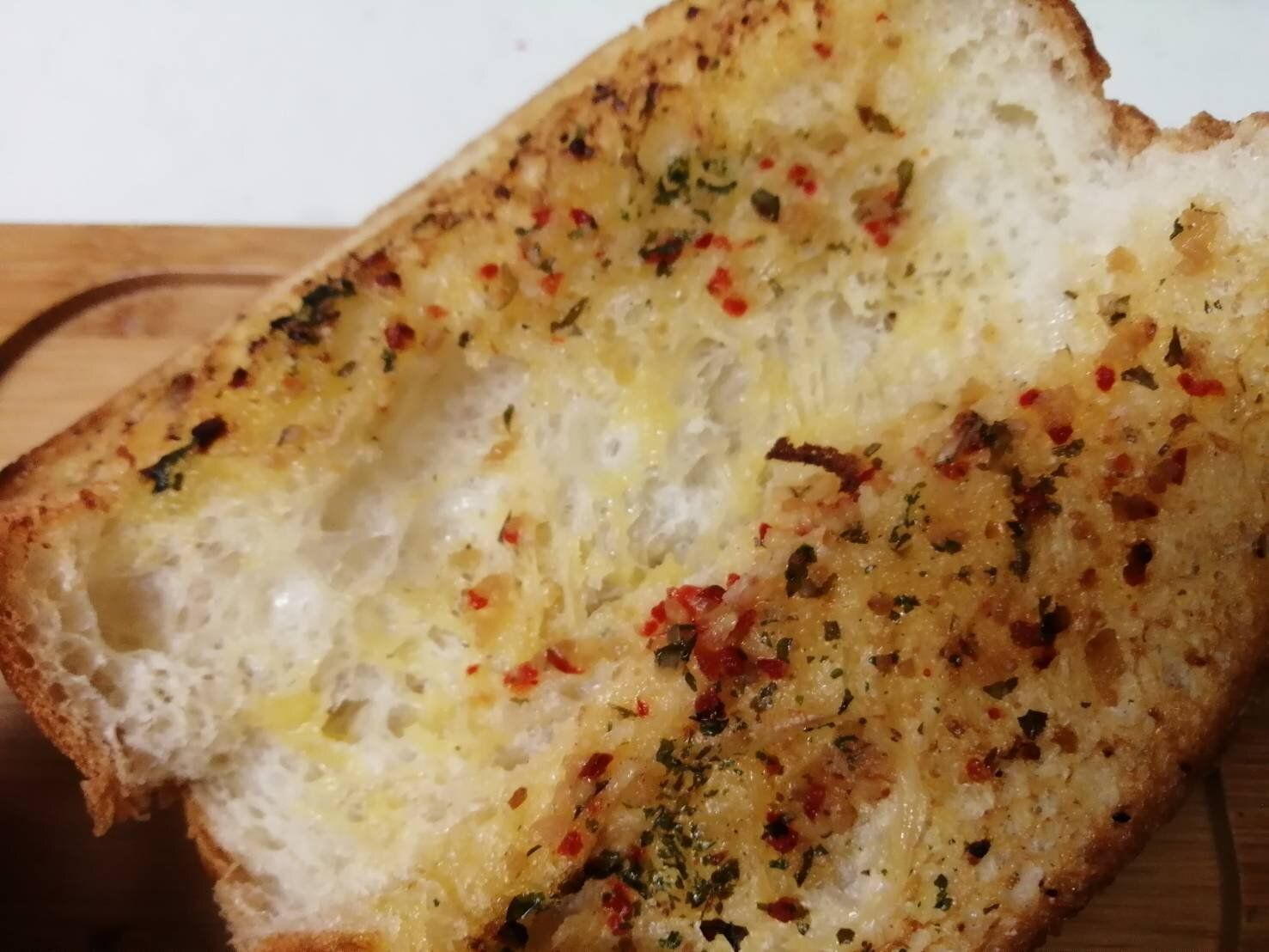 厚切りだけれどスムーズに食べられる程に生地がふんわりしています。ニンニクの濃厚さ、ガーリックオイルがパン生地全体にジュワーっと広がり、もうたまりません!