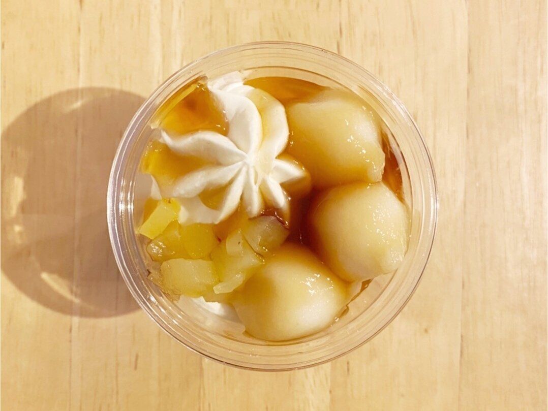 みたらし団子にホイップやプリンをからめて食べる和風スイーツです。