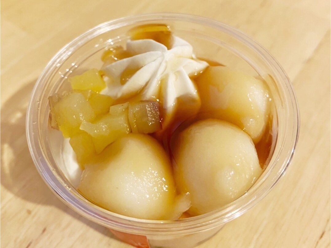上にはさつまいもダイスとみたらし団子がトッピングされています。