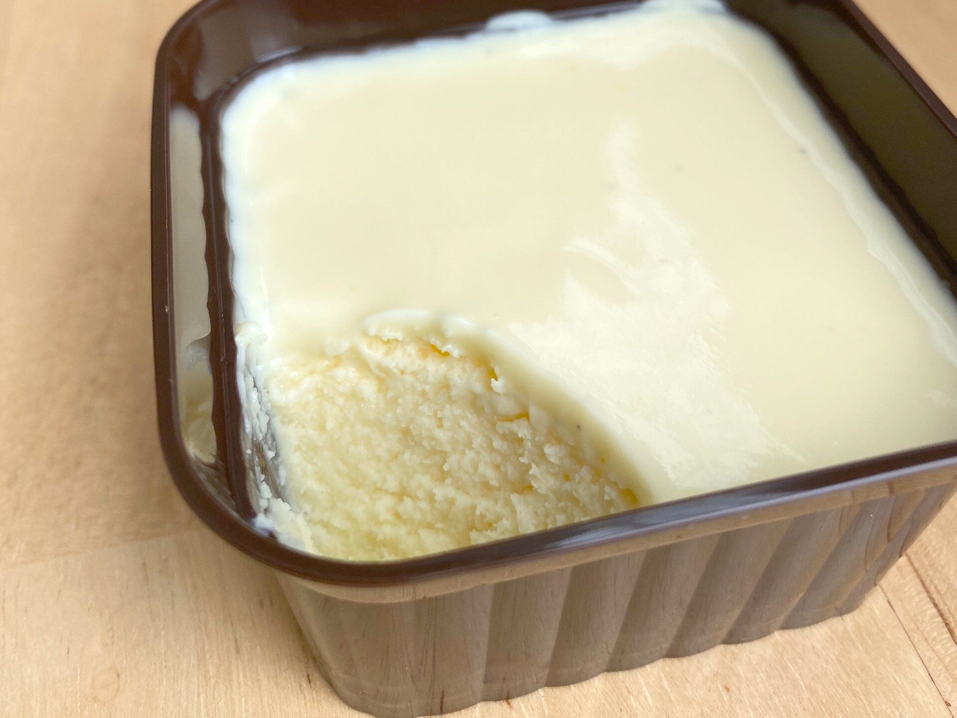 デンマーク産クリームチーズと北海道産生クリームを使用したなめらかなテリーヌに、バニラチーズソースがかかっています。208kcal、220円(税込)。