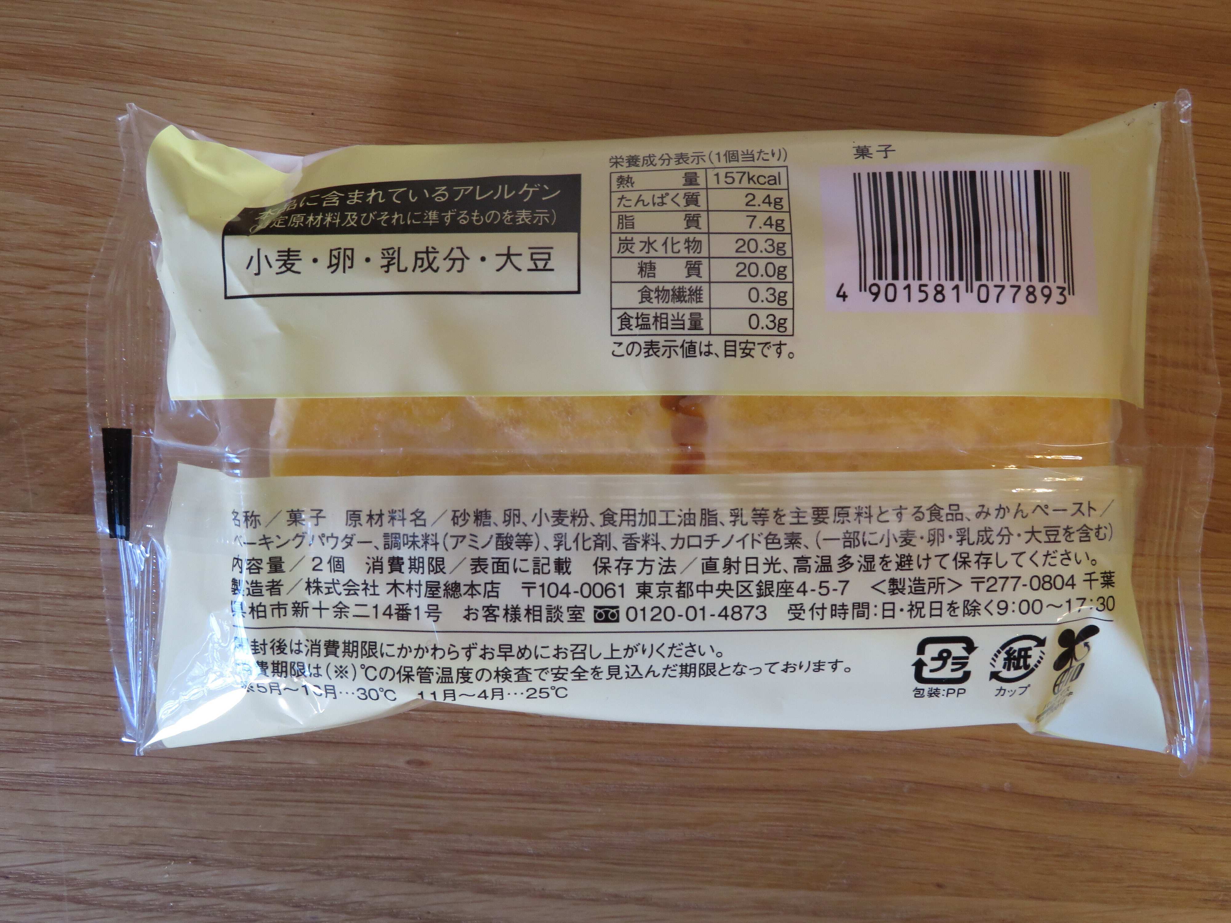 鮮やかなオレンジ色のまるい物体が2つ並んで、まるで買ってくれと言わんばかりにこちらを見つめていました。正式名称は「ミニむしケーキみかん 2個入」です。