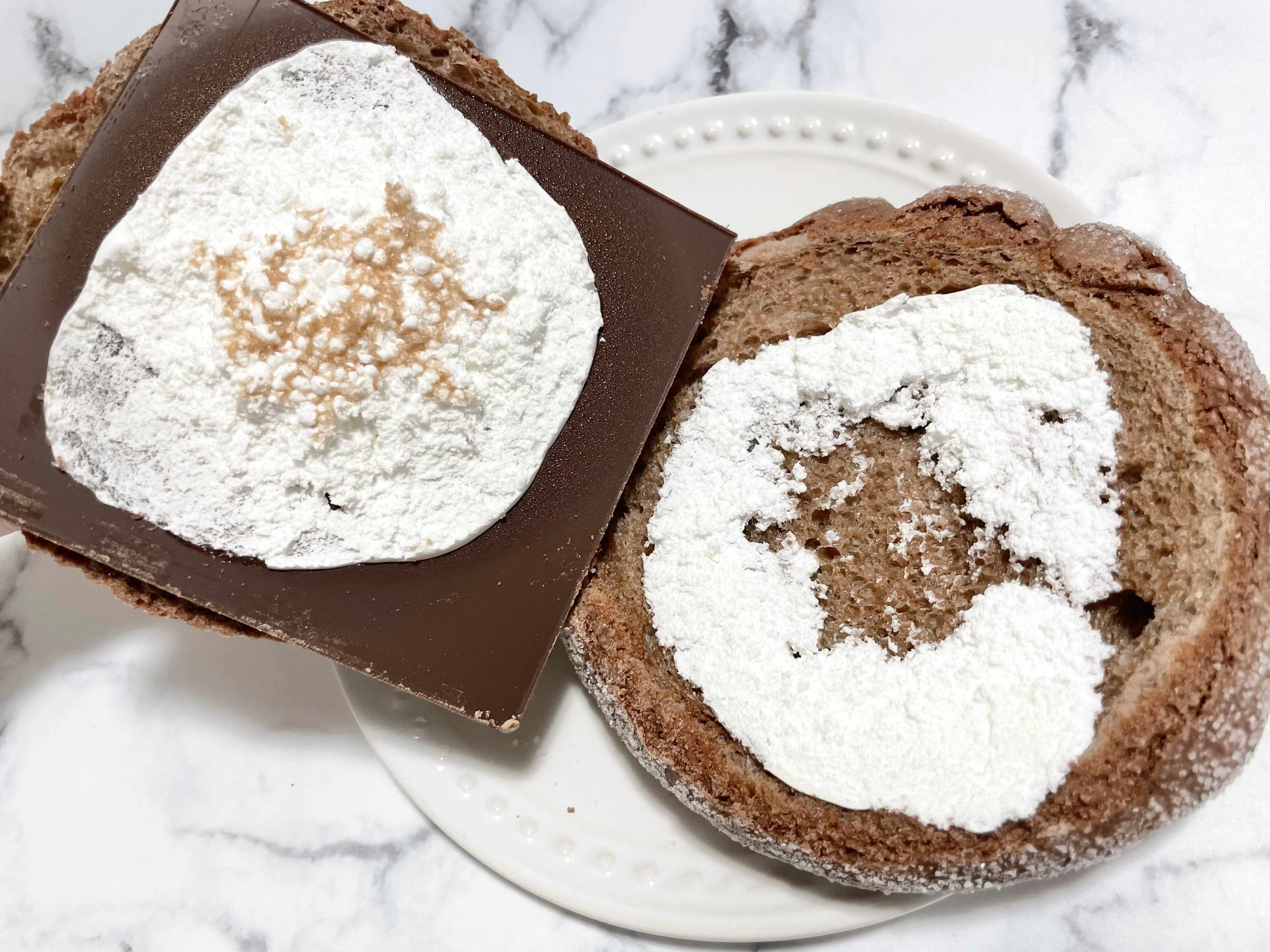 ちょっとパサつきが気になるので600Wの電子レンジで20秒ほど温めたら……これが正解!パンはしっとりと柔らかく、パキッとした食感のチョコはなくなったもののとろりとして風味が濃厚になりました。