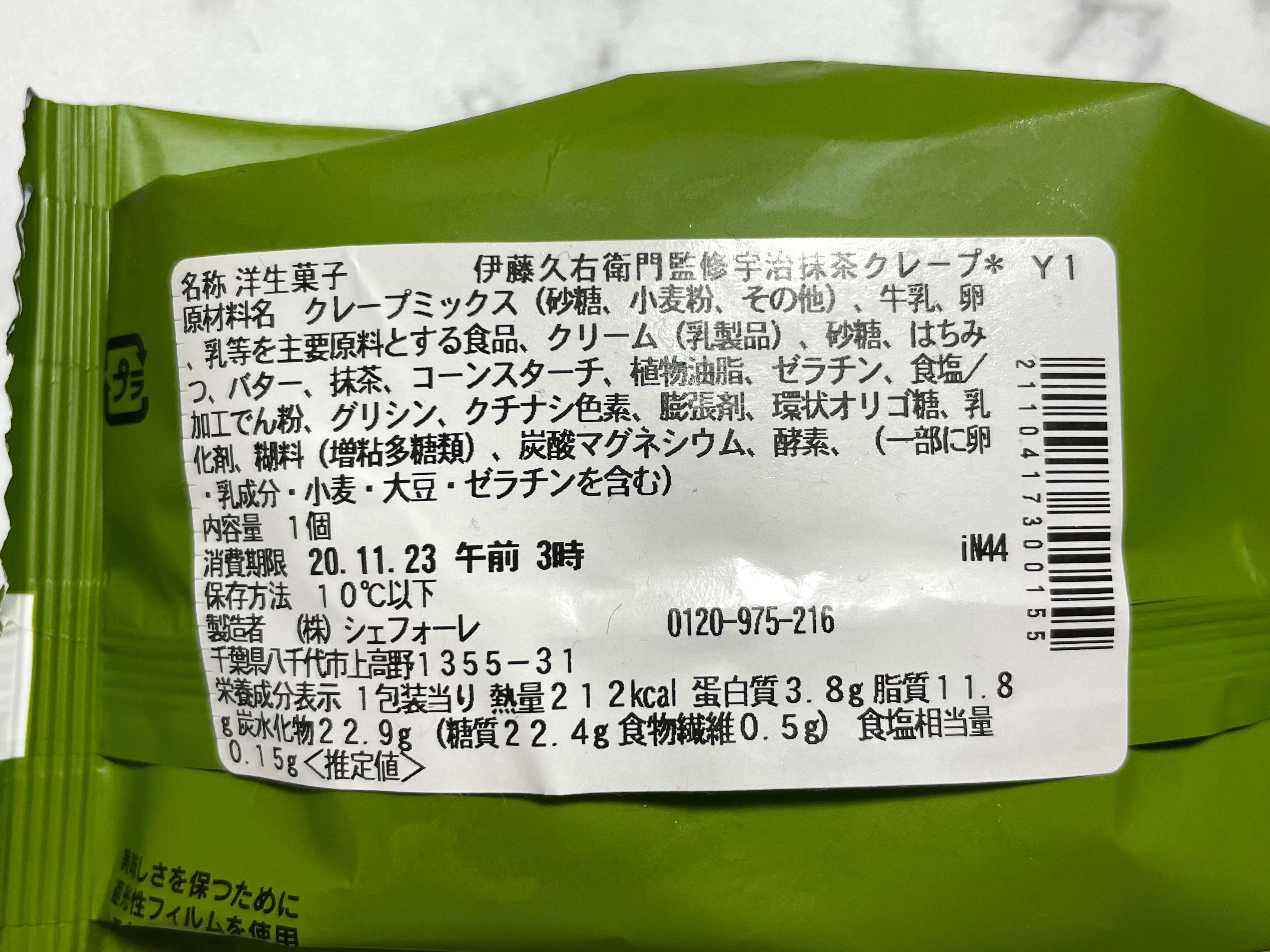 セブンの宇治抹茶クレープうまい、