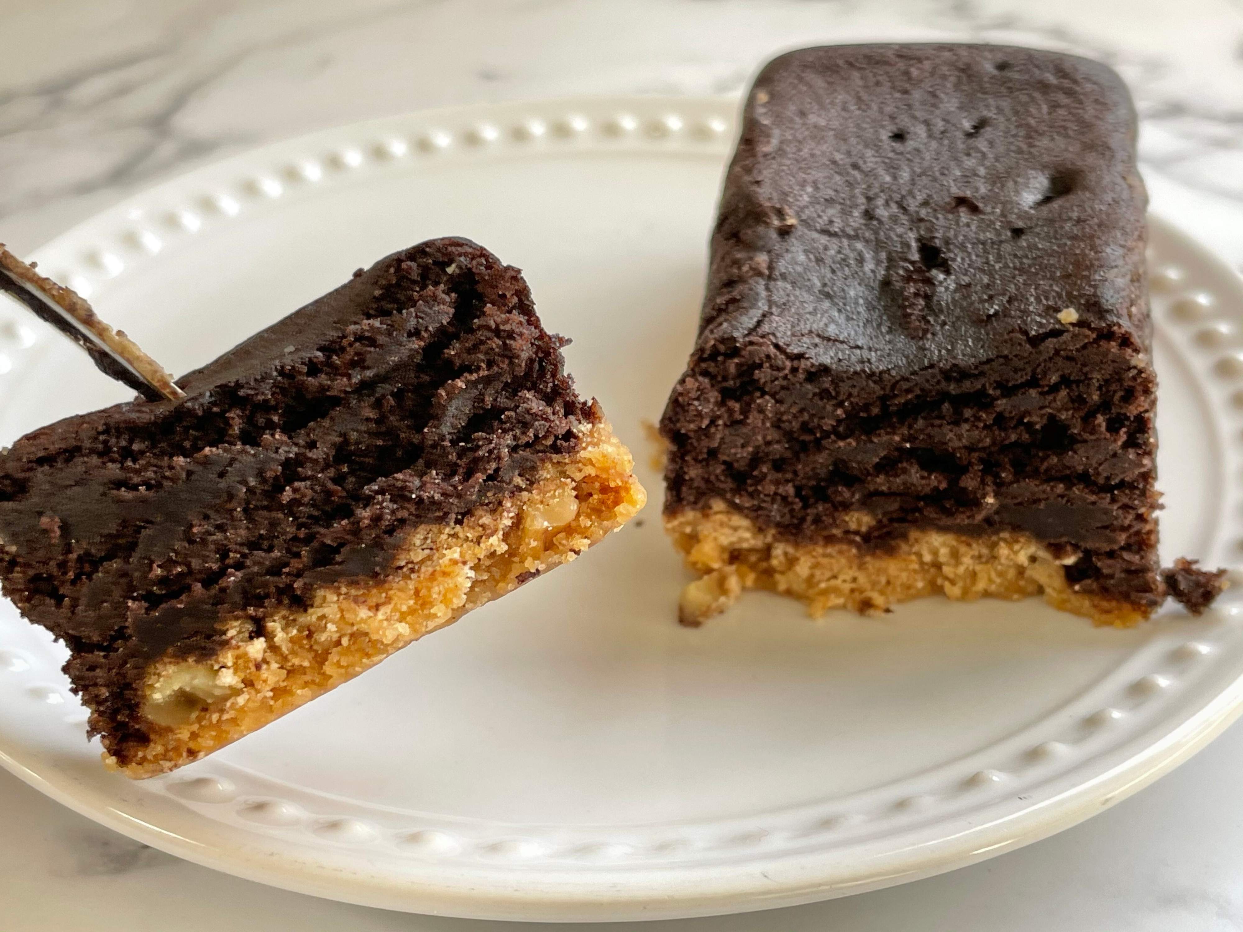 まるでブラウニーのようなしっとりさ。フォークで切るとほろほろと崩れていきます。くちどけがいいのでたべやすいです。 刻まれたくるみが香ばしくてアクセントになっていて、いいですね。