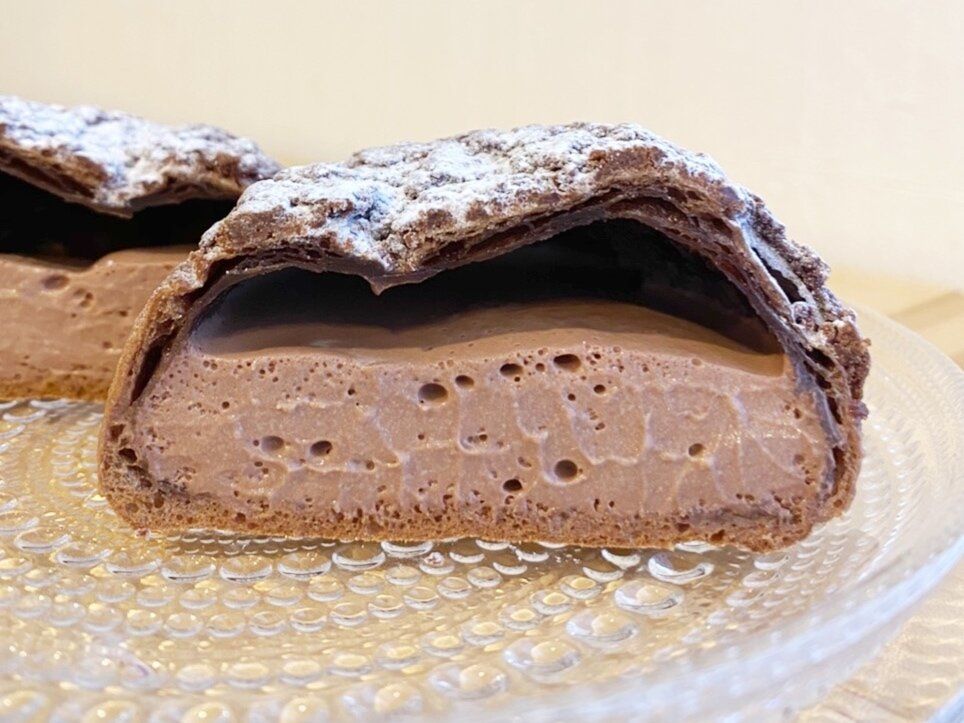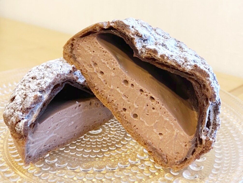 チョコレートの味や香りもしっかりと味わえる、チョコ好きにはたまらないシュークリーム!