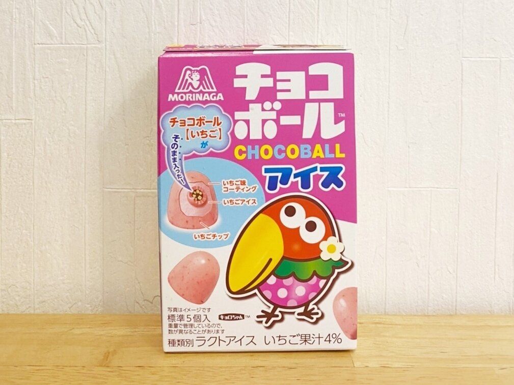 『チョコボールいちご』がそのまま入った一口サイズのアイス。