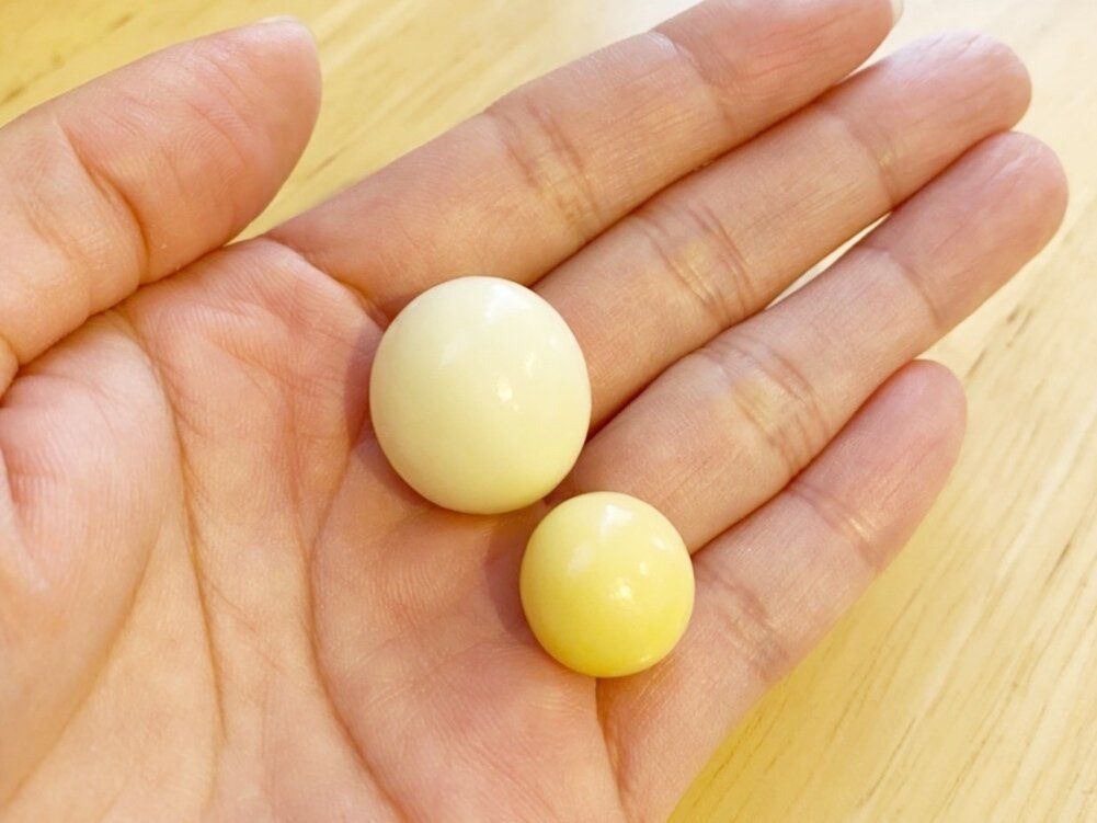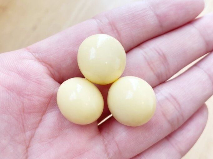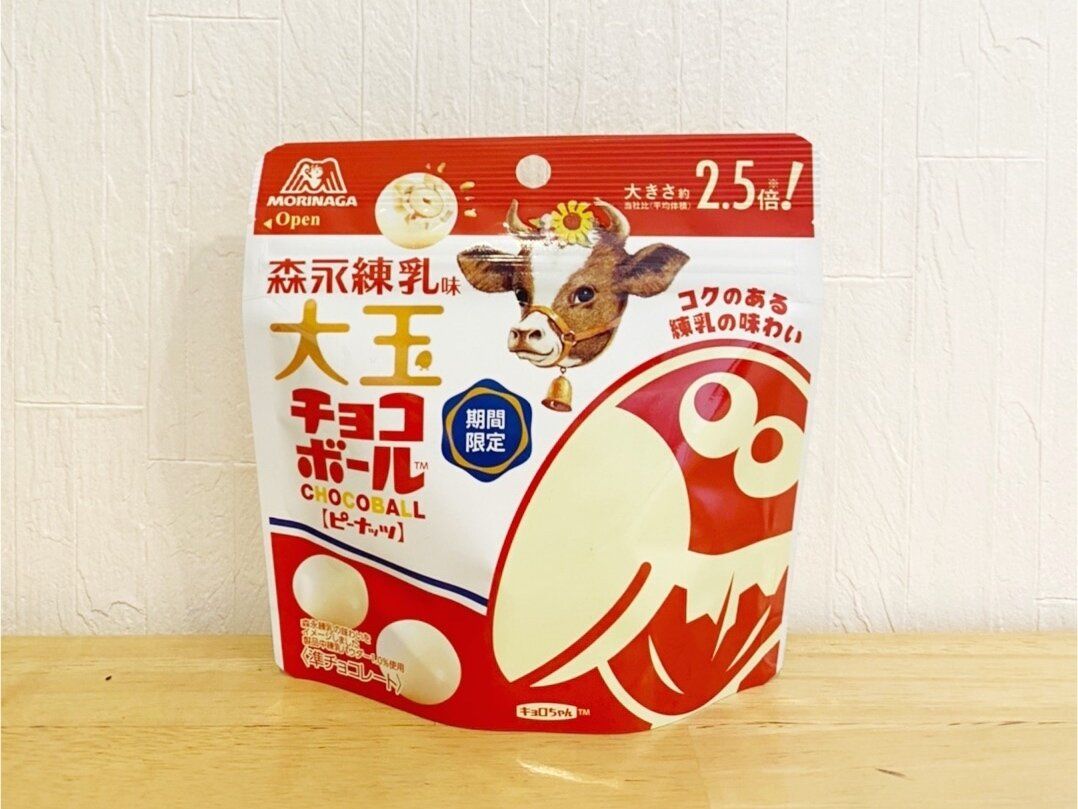 ピーナッツを森永練乳味のホワイトチョコレートでコーティングした大玉のチョコボール。