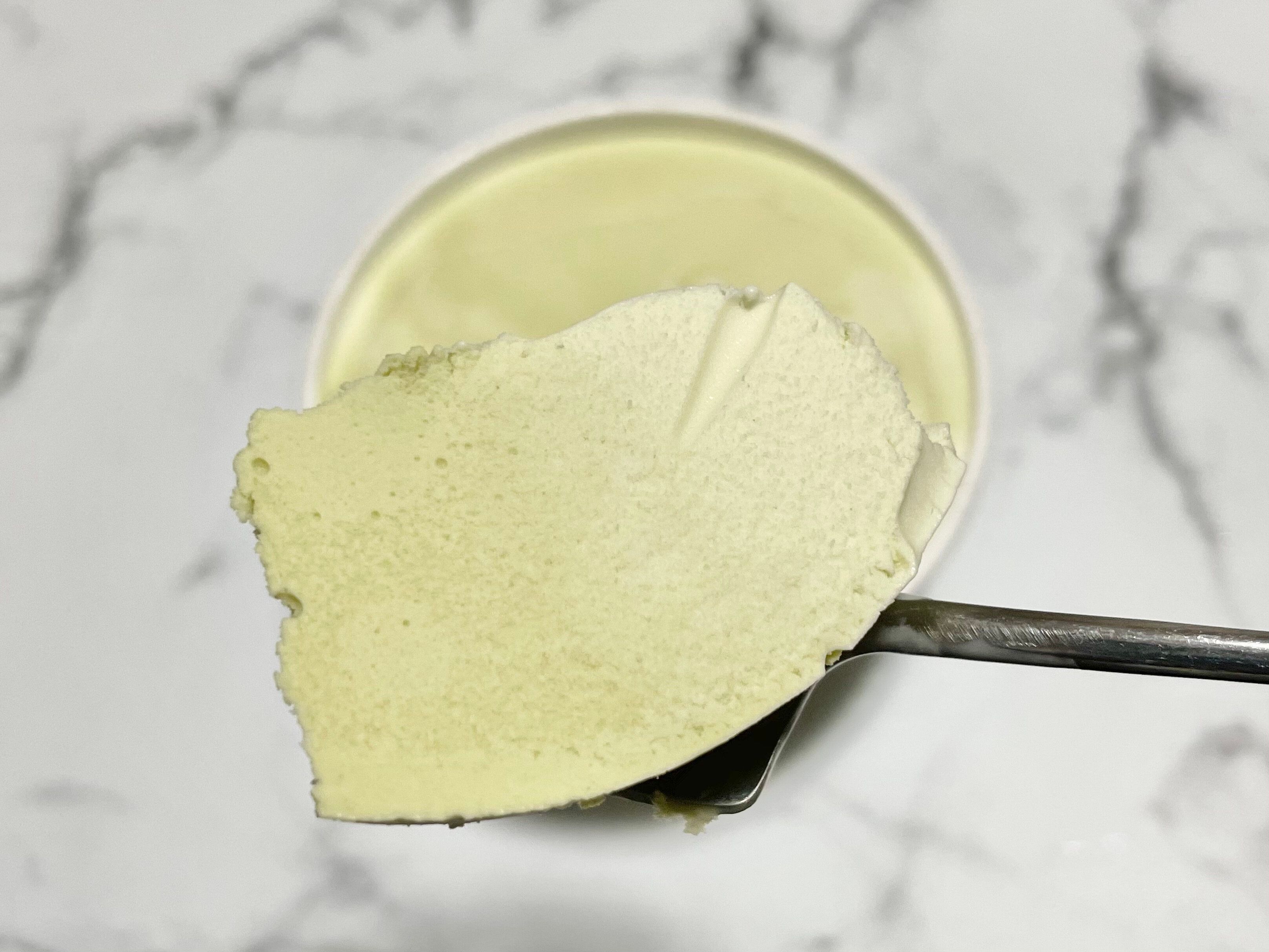 ピスタチオの黄緑とミルクの白が混ざり合ってきれいなマーブルになっています。
