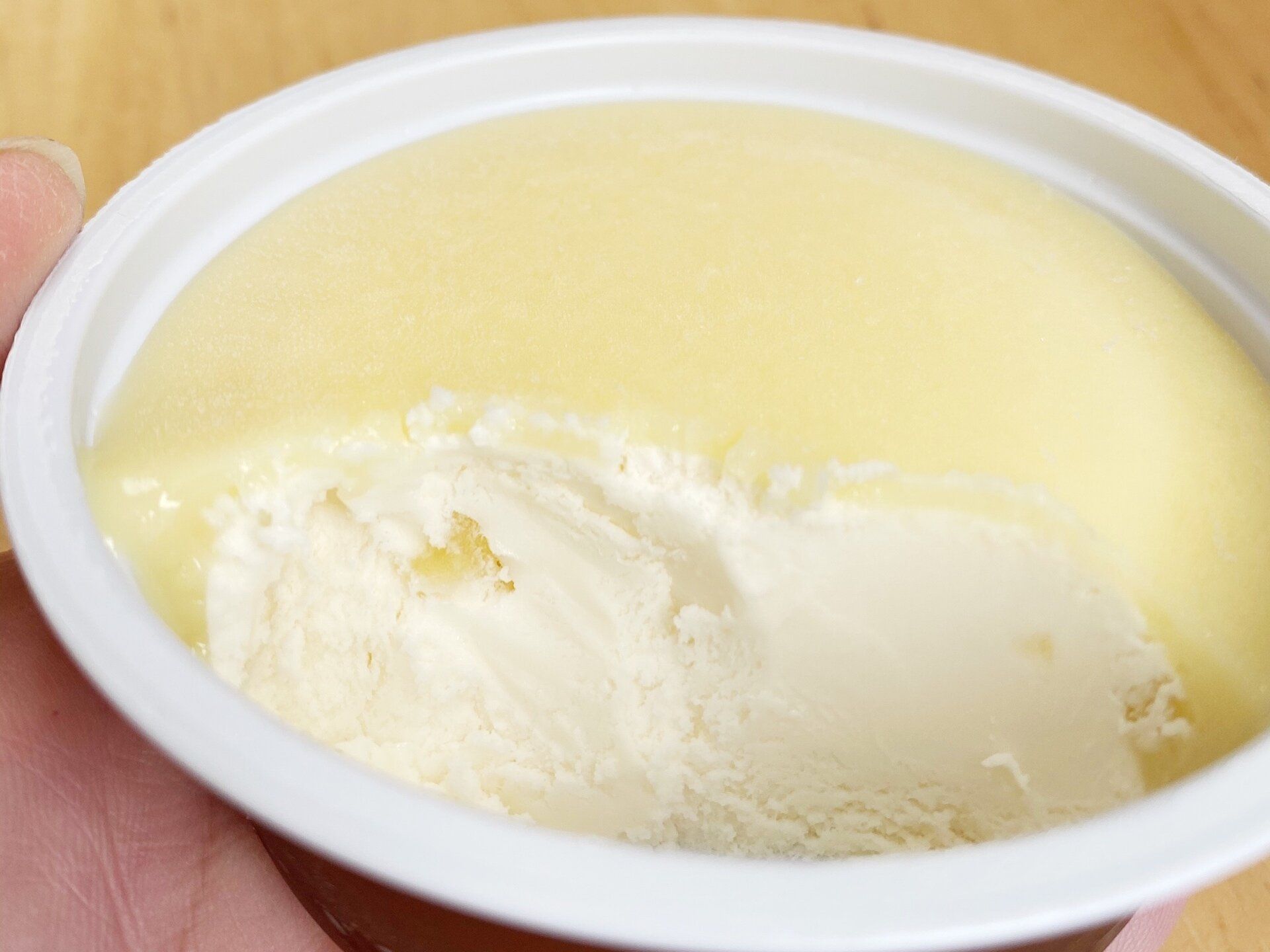 無脂乳固形分6.2%、乳脂肪分11.9%のアイスクリームなので、スプーンを入れた瞬間になめらかさが伝わってきます。口に入れた瞬間にスーッと溶け、発酵バターのコクとりんごの風味が広がります。濃厚なバター味の後にはりんごの酸味がやってきてなんとも爽やか!
