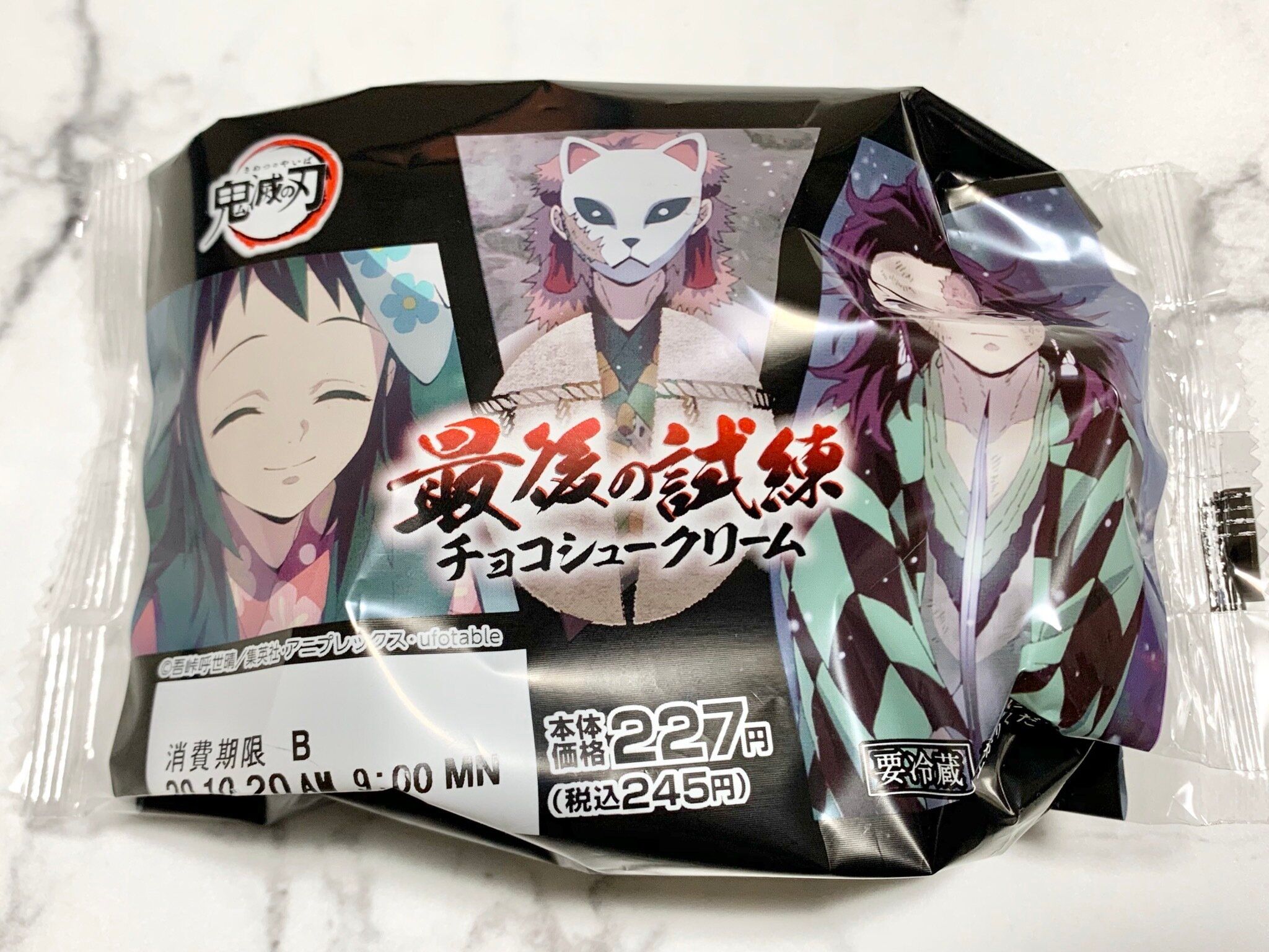 ローソンから「鬼滅の刃」とのコラボスイーツが出ると知り、発売日に店舗へ行くも……撃沈。それから数日通っても出会えなかったのですが、やっとのことで「最後の試練チョコシュークリーム」に出会えました。「鬼滅の刃」の人気ってすごいんですね。