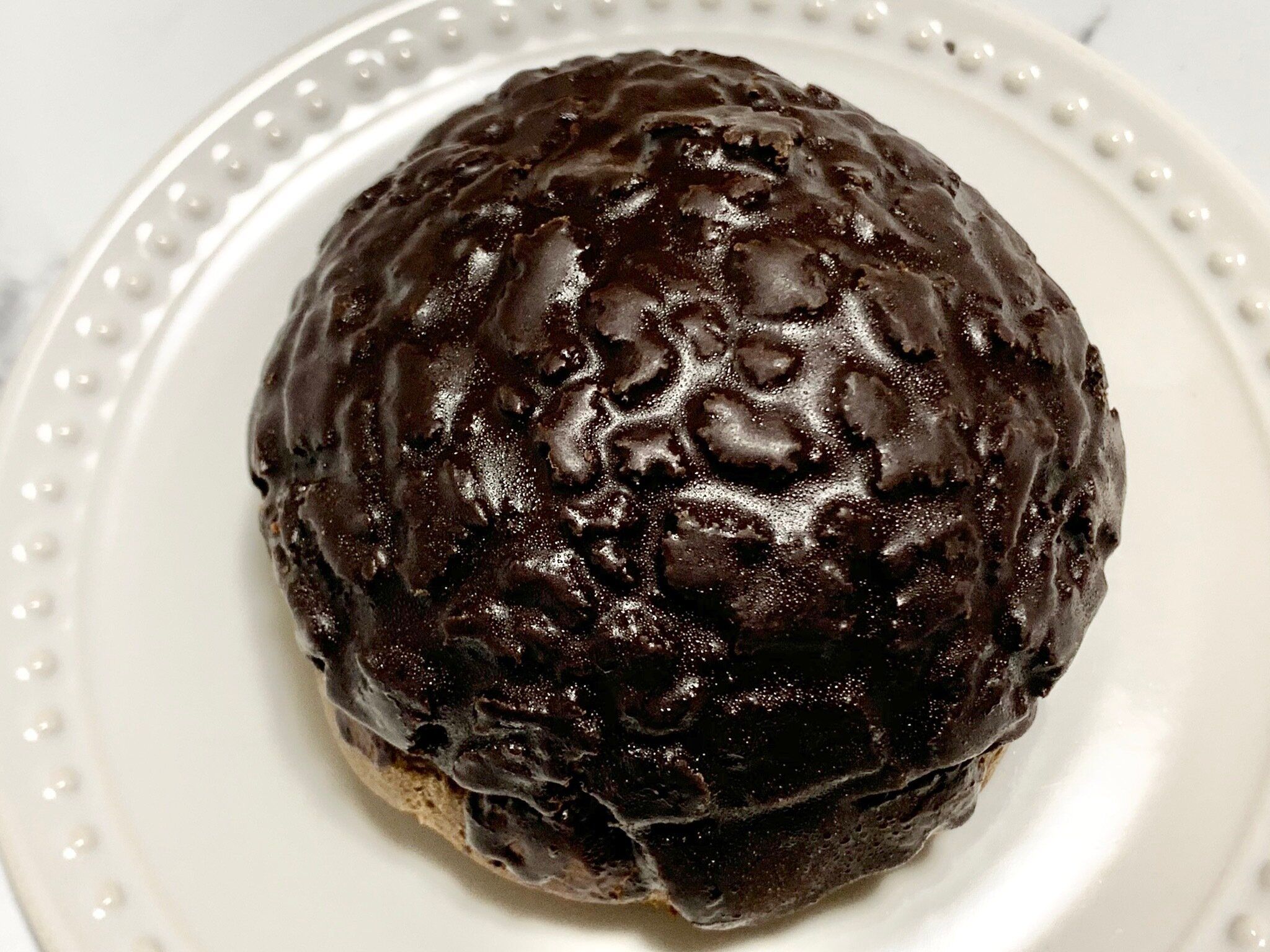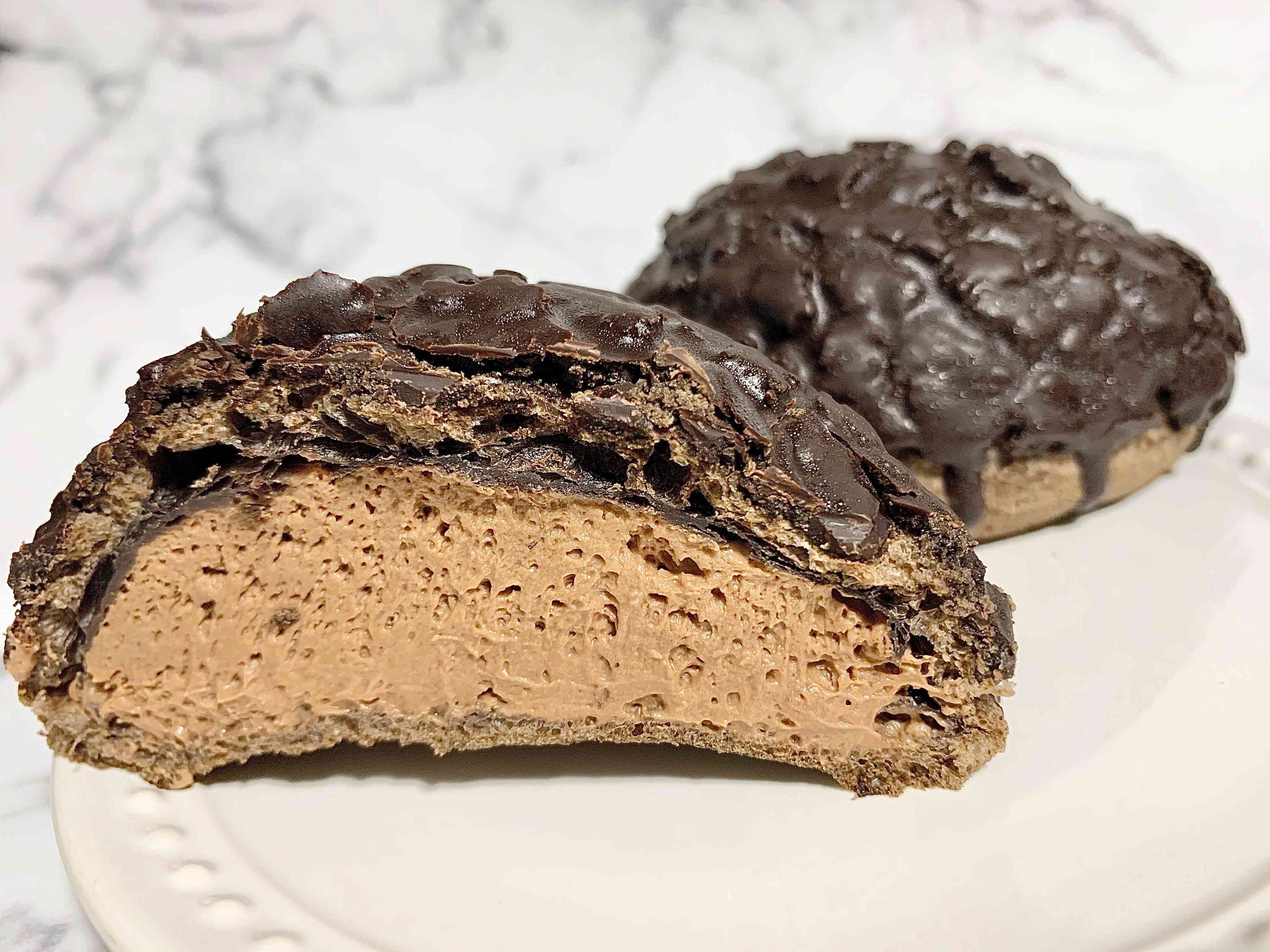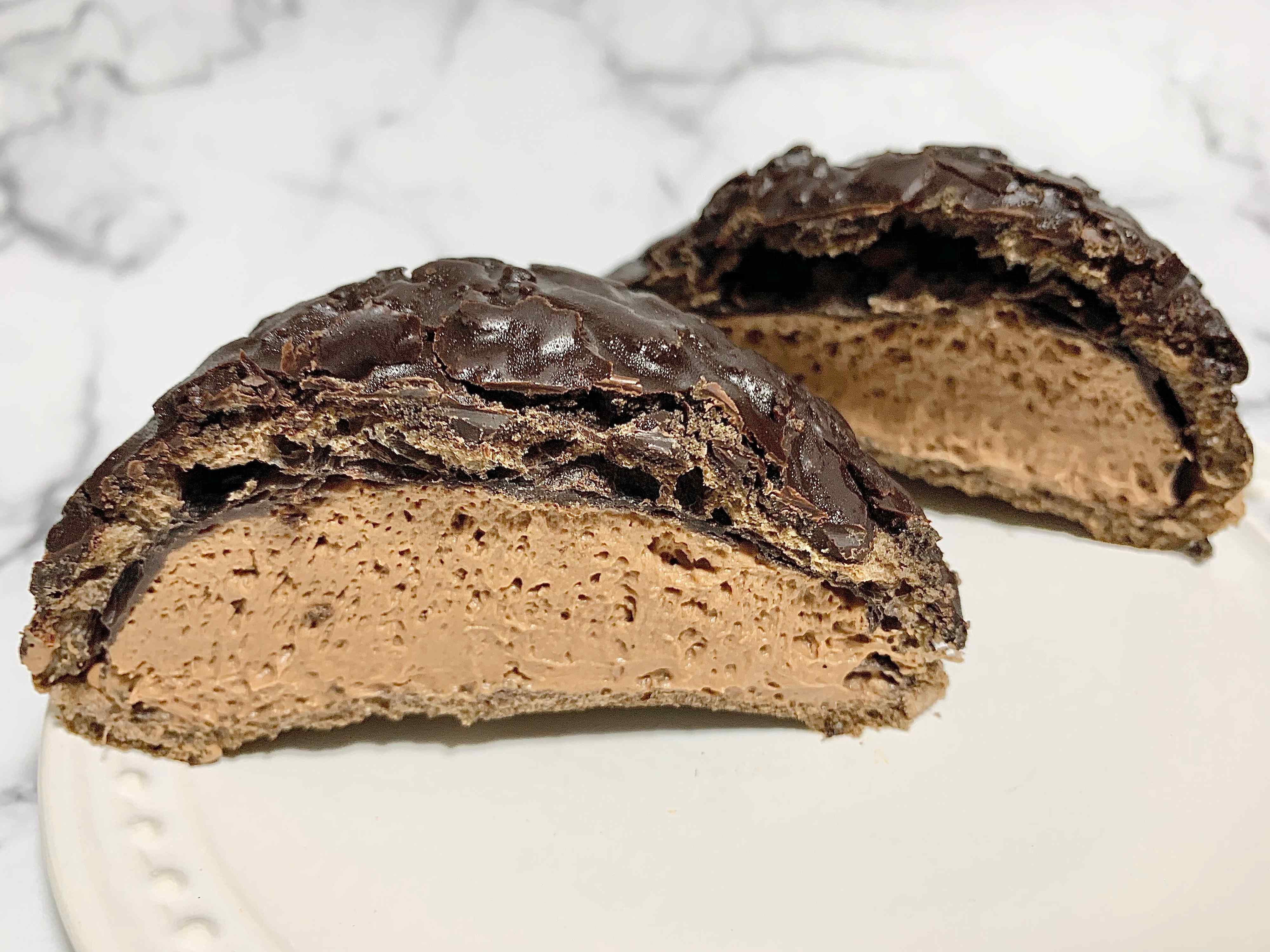 チョコクリームがかかってない下の生地はパサパサ感が否めないですが、分厚いチョココーティングとたっぷりのチョコクリームのおかげでほとんど気になりません。甘そうな見た目ですが、チョコクリームがビターで甘すぎないので食べやすかったです。