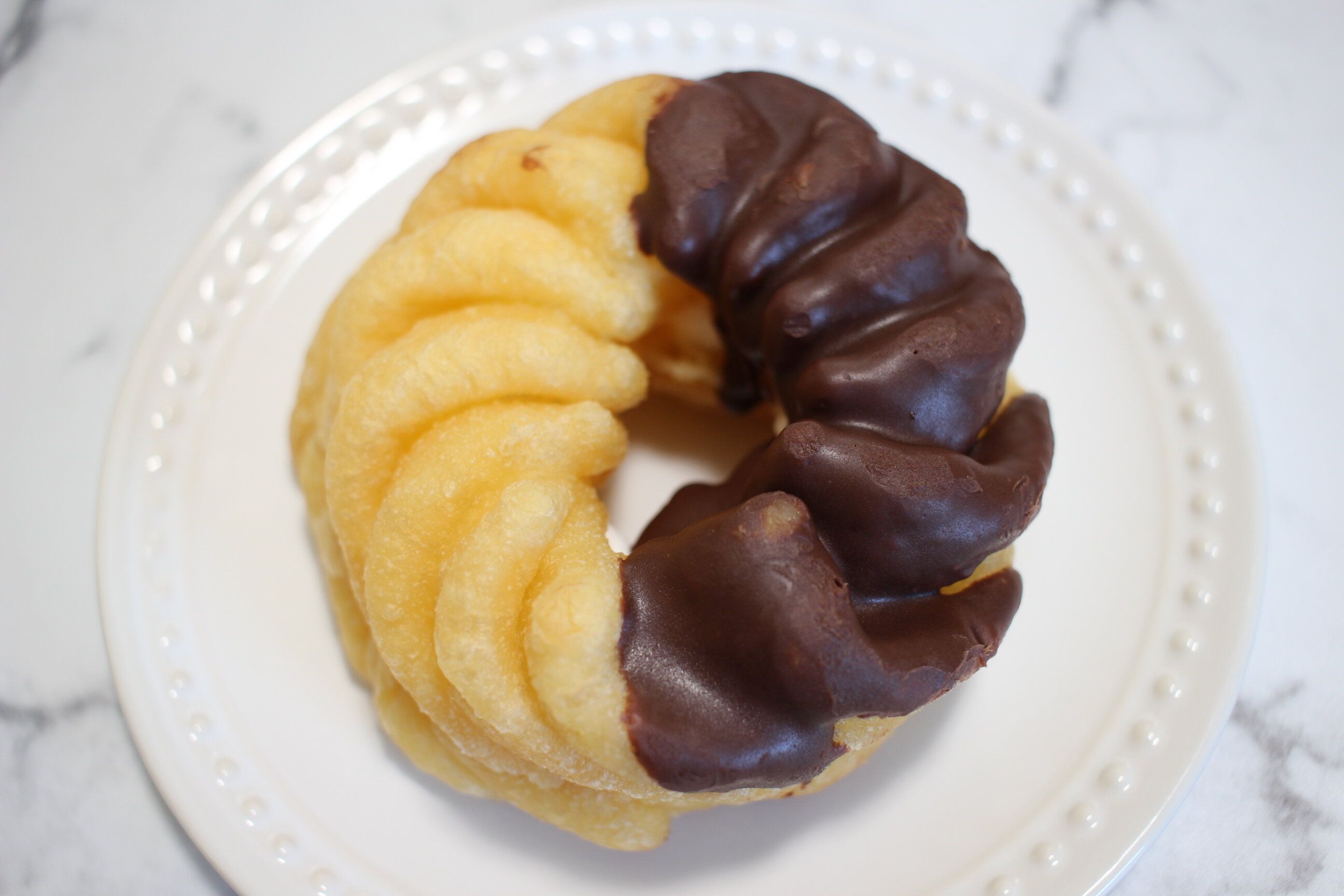 チョコは半分かかっていて見た目がミスドのエンゼルフレンチにそっくりですね。