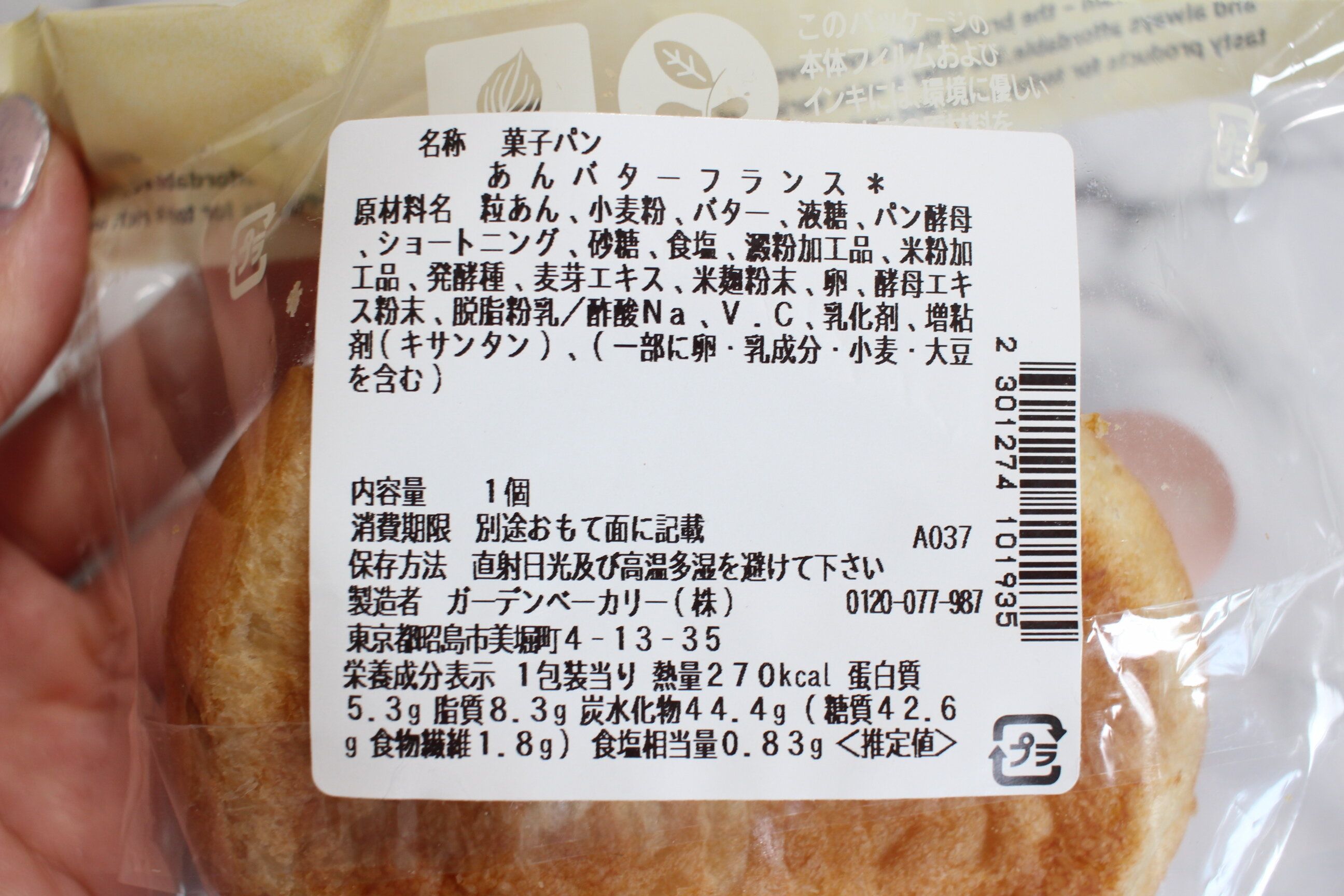 1個あたり270kcalとこちらもやや高めな印象ですが、あんバターですもん。