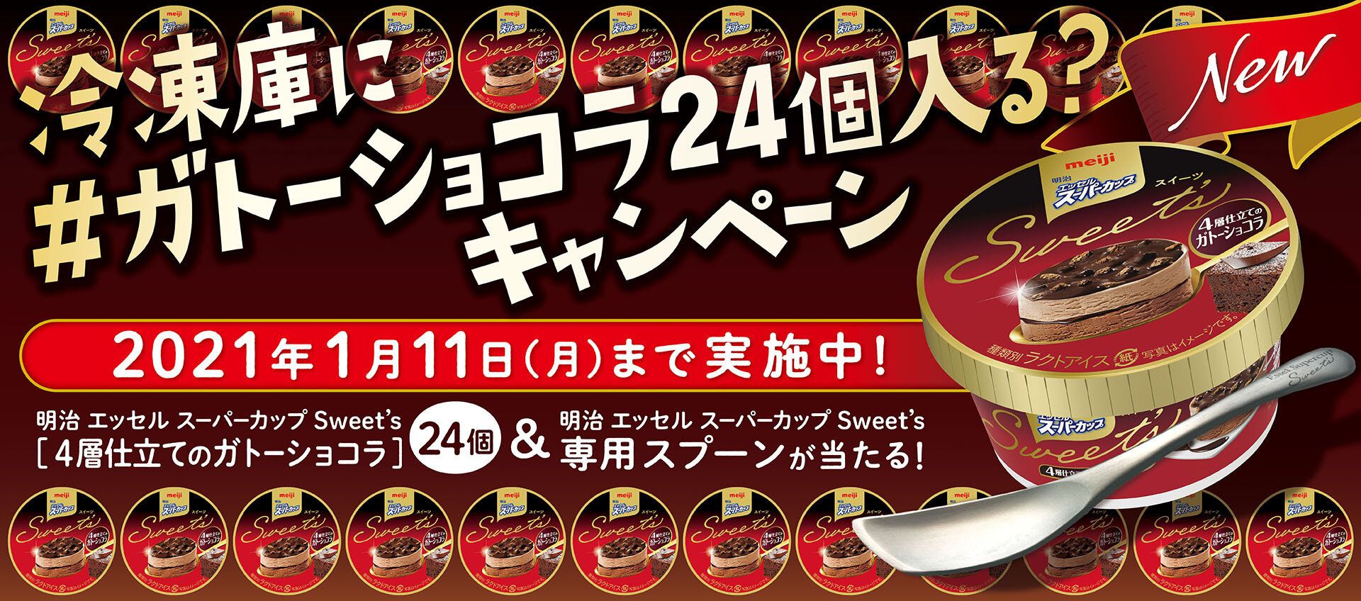 キャンペーン名: 「明治 エッセル スーパーカップSweet’s 冷凍庫に #ガトーショコラ24個入る? キャンペーン」